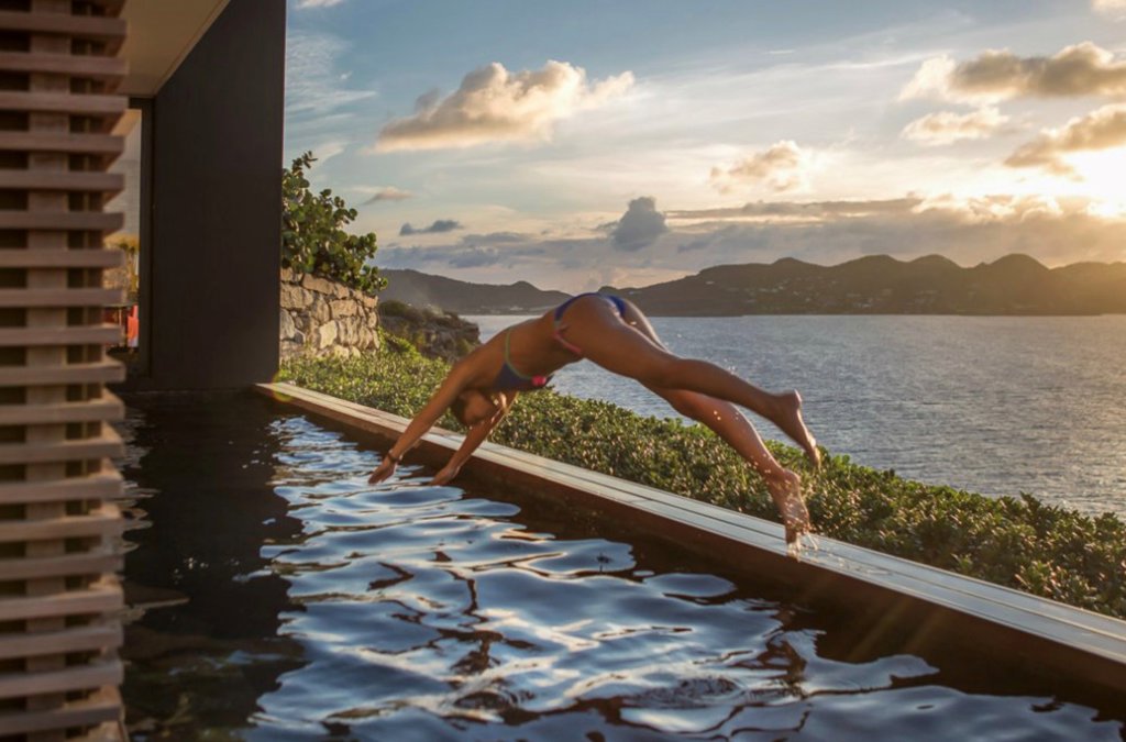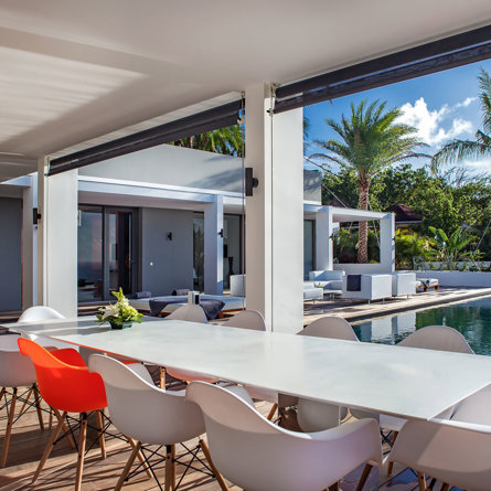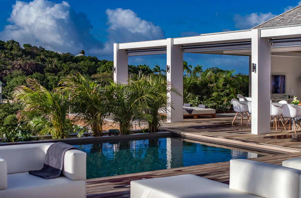 Fashion-forward friends will delight in the charming three-level Villa Legends B with its five designer themed bedrooms in modern décor to channel the glamour of Chanel, Vuitton, Hermes, Saint Laurent or Bulgari — this fully air-conditioned home features a fitness room and sunset views over Lurin and Gustavia.