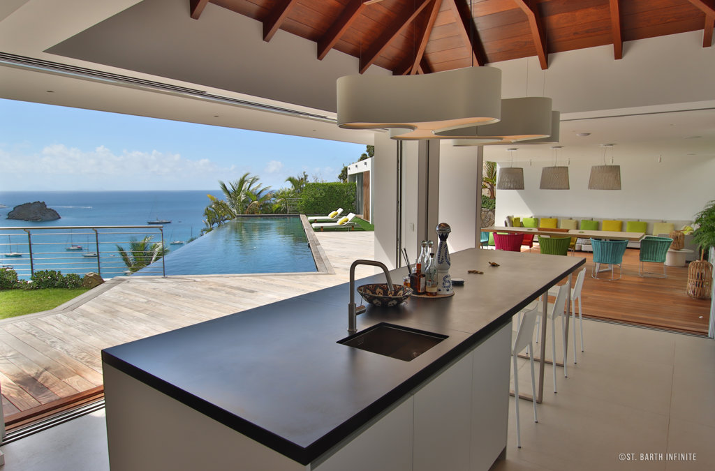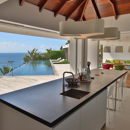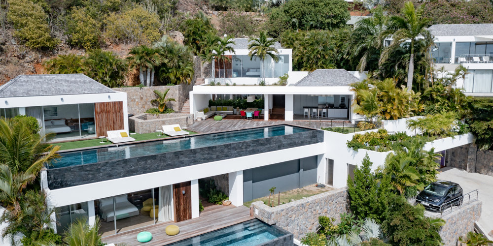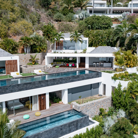 Brimming with local charm and captivating sunset views, the modern, spacious Villa Maison de la Luz features three tastefully appointed levels that overlook Corossol Bay. Perfect for entertaining, this unique property boasts large communal areas, multiple dining areas and four private bedrooms and bathrooms perfect for a getaway with close friends.