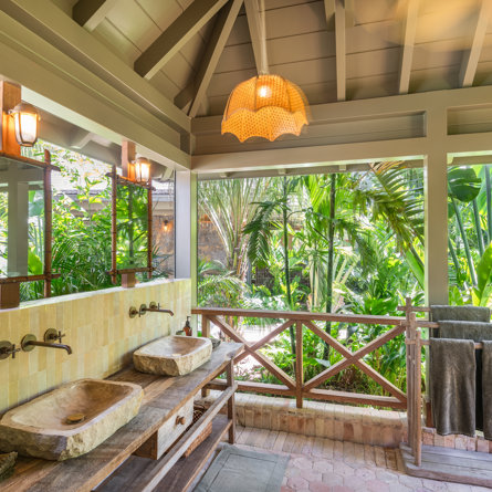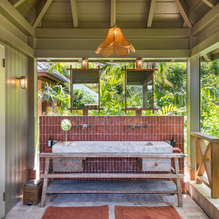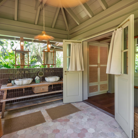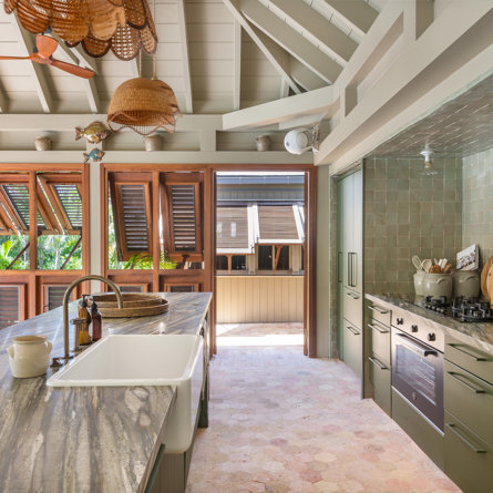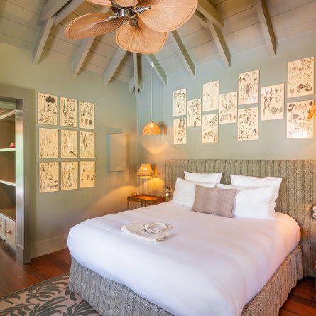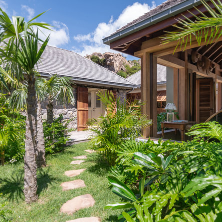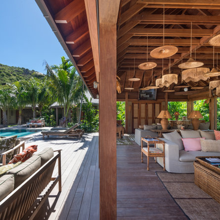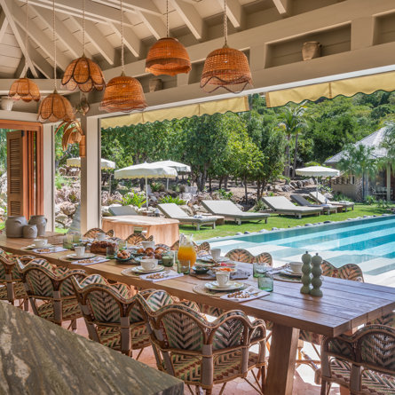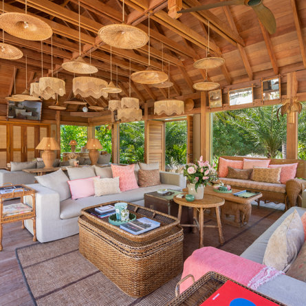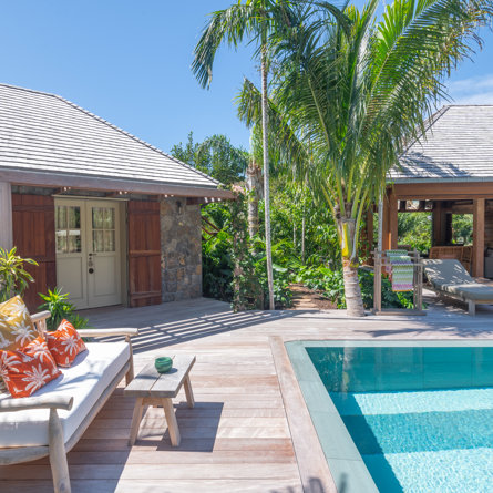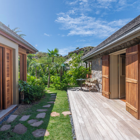 Nestled into a St Barths valley, within walking distance of Saline Beach, Maison Saline offers total privacy, surrounded by nature. Inspired by an Italian countryside aesthetic, the décor features fine fabrics and natural materials such as wood and stone, communicating seamlessly with the lush tropical gardens outside.