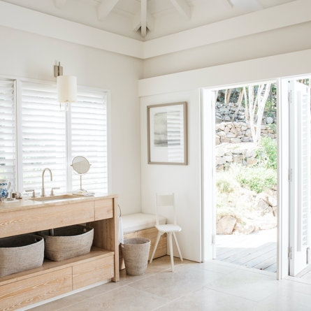 Ensuite bathroom, Walk-in shower, Outside shower, Two sinks, Separate Toilet.