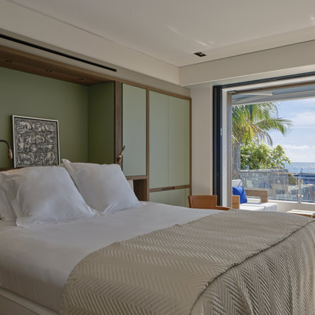 Sea view, Private terrace, Air conditioning, King size bed or Twin beds, Walk-in closet, TV, Smart TV, Dish, Apple TV, Satellite, Netflix, Sound system, Black out curtains, Mosquito screen, Desk, Safe.