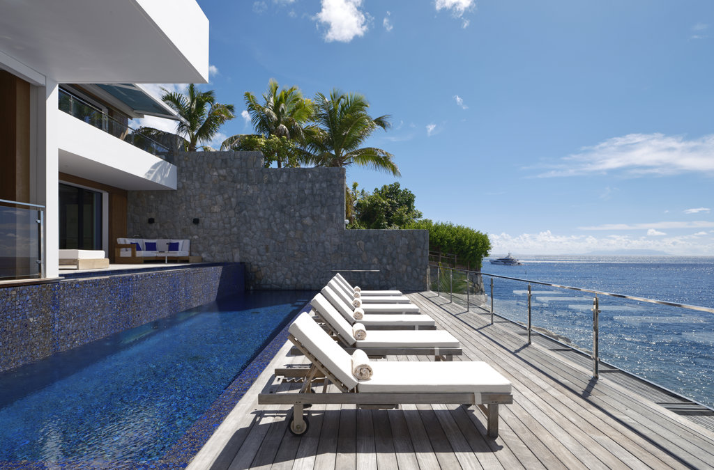 Sea view, Dining table, Heated pool, Shower, Sun beds, Sofa, Sound system.
