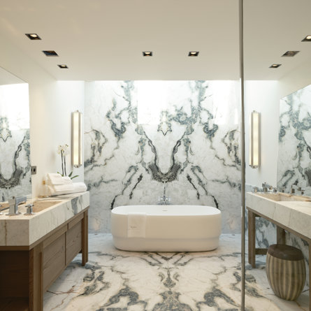 Ensuite bathroom, Walk-in shower, Bathtub, Two sinks, Closed toilet.