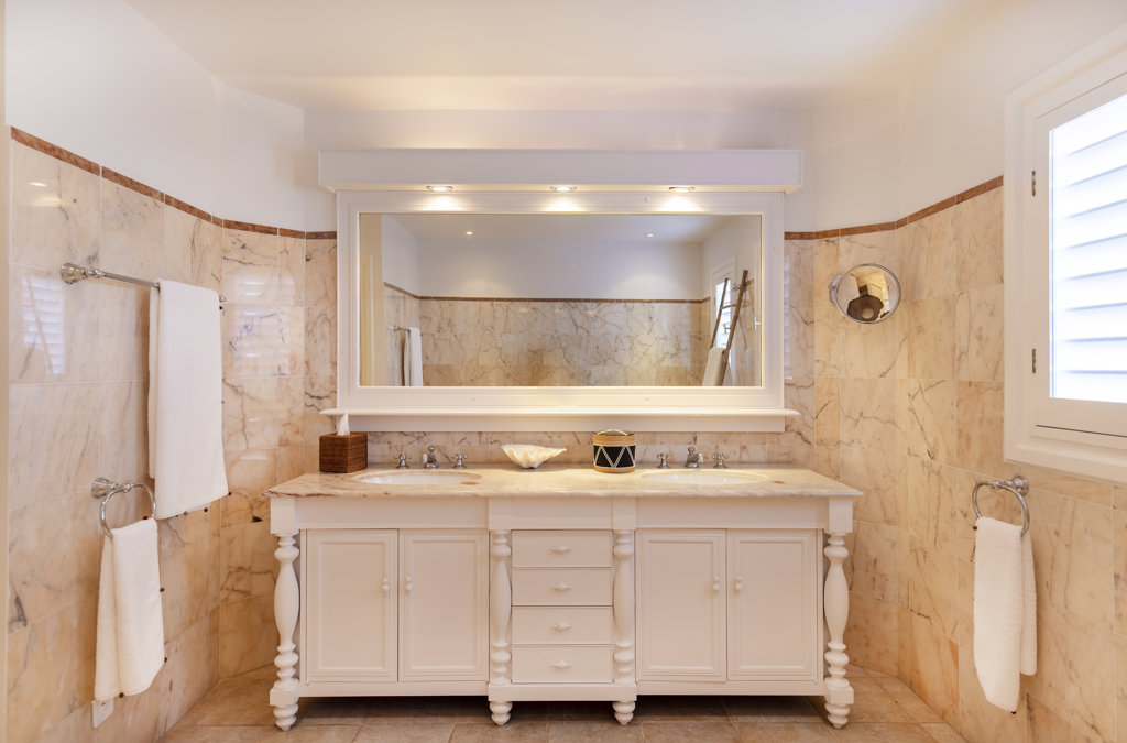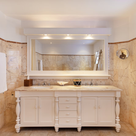 Ensuite bathroom, Shower, Two sinks, Toilet.