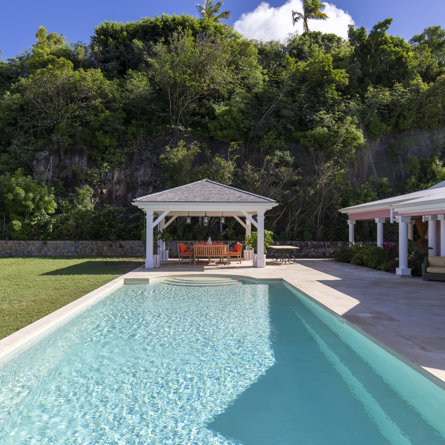 Villa Mustique is appointed in a traditional island style, revisited with modern amenities throughout its vast spaces, beautiful garden and private layout with two bedrooms on either side of the common areas, two on the lower level and the two others in independant bungalows in the garden.