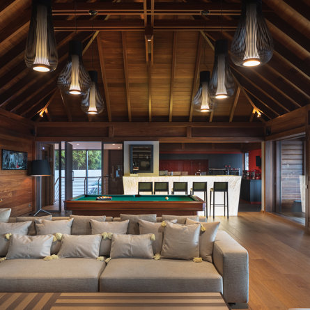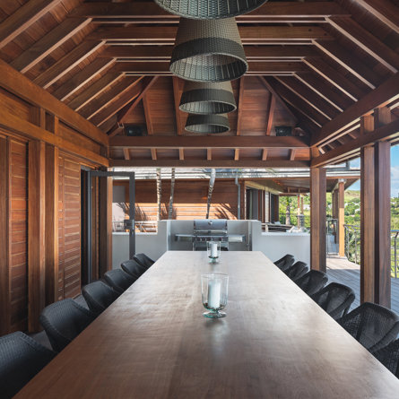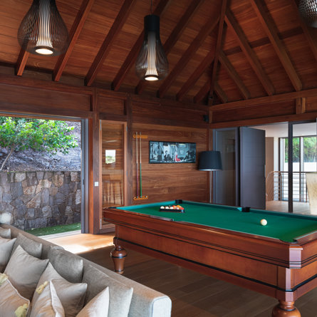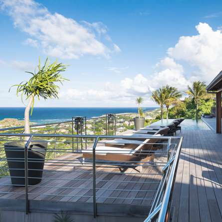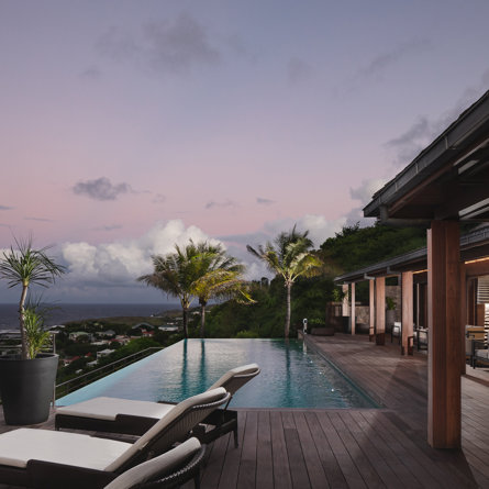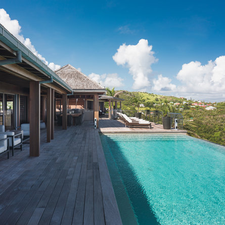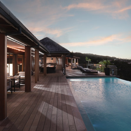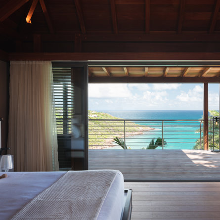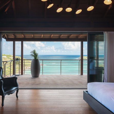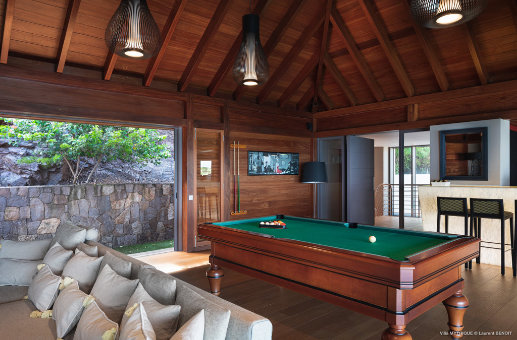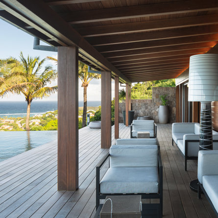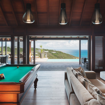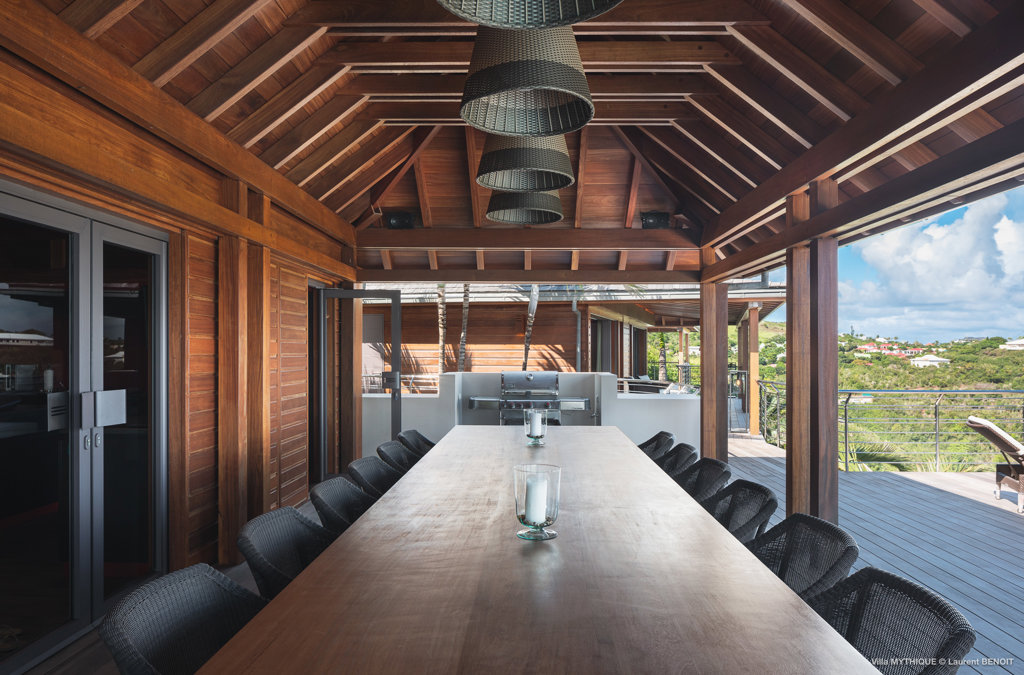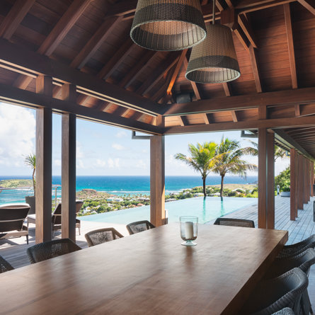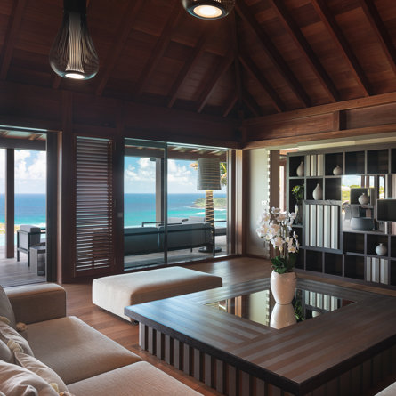 Wooden features and a feeling of spaciousness characterize Villa Mythique, an entertainer’s paradise complete with a theatre room, unique bedrooms each with its special flair, a small fitness room and picture-perfect views over Marigot — can be combined with Villa Epicure for an even larger family reunion.