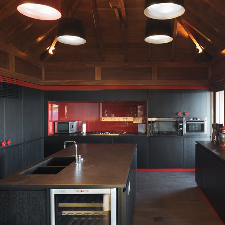Air conditioning, Coffee machine, Kettle, Fridge, Wine cellar, Gas stove, Oven, Microwave, Toaster, Dishwasher, Bar.