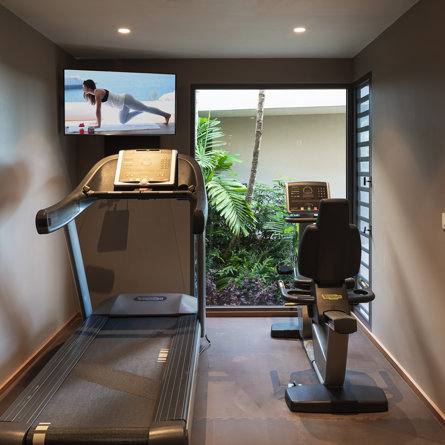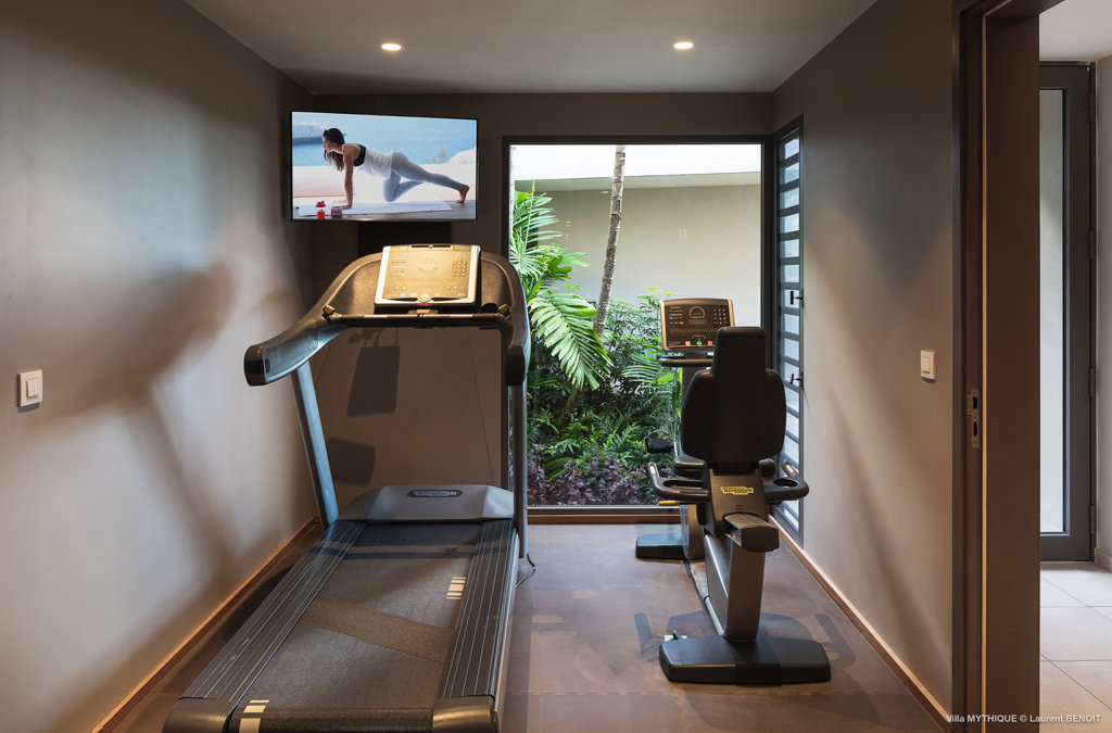 Air conditioning, Treadmill, Elliptical bike, Indoor bike, Weights.