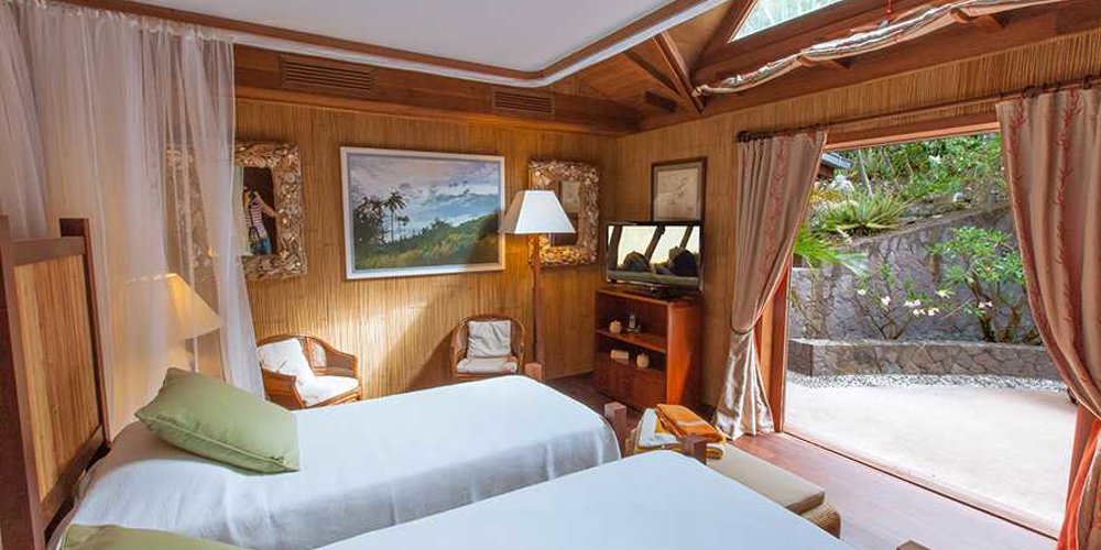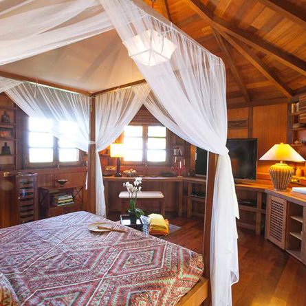 Garden view, Private terrace, Air conditioning, Queen size bed, Closet, Desk, Smart TV, Dish, Apple TV, Black out curtains, Mosquito net, Safe.