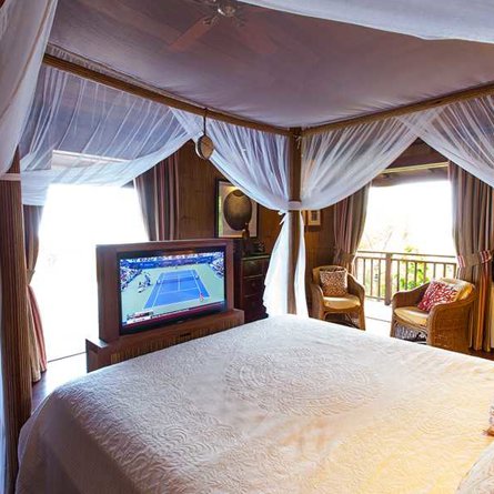 Garden view, Air conditioning, Fan, Queen size bed, Closet, Desk, Smart TV, Dish, Apple TV, Black out curtains, Mosquito net, Safe.
