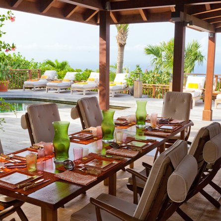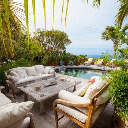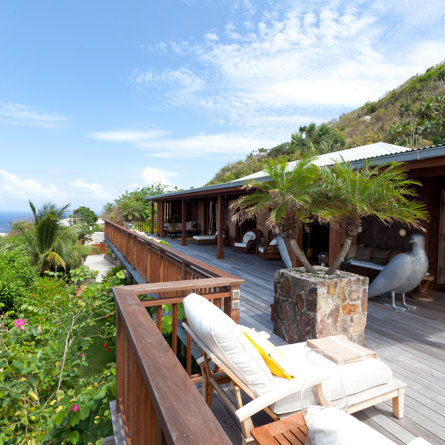 One of St Barths oldest and most original properties, Villa Nahma is a dream of a house tucked into the mountainside facing East, with refined wood décor throughout, two bedrooms under the same roof and two other large bedrooms in a separate bungalow — perfect for families with teenagers.