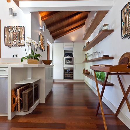Coffee machine, Nespresso machine, Kettle, Fridge, Wine cellar, Gas stove, Oven, Microwave, Blender, Toaster, Dishwasher.