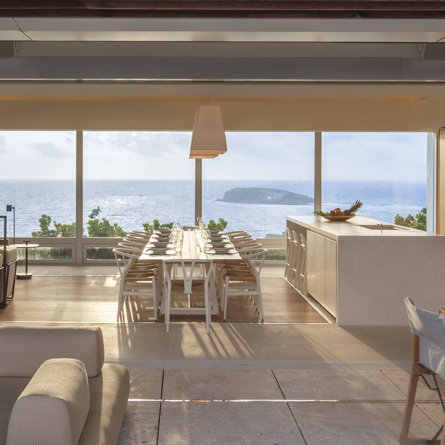 Sea view, Terrace, Dining table, Heated pool, Shower, Sun beds, Sun umbrellas, Sofa, Sound system, Barbecue.