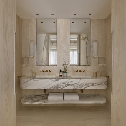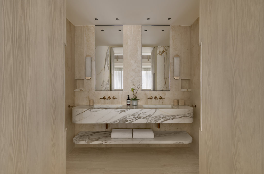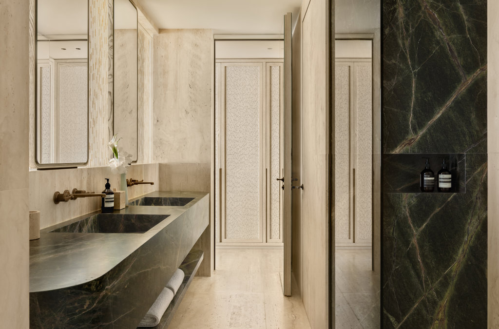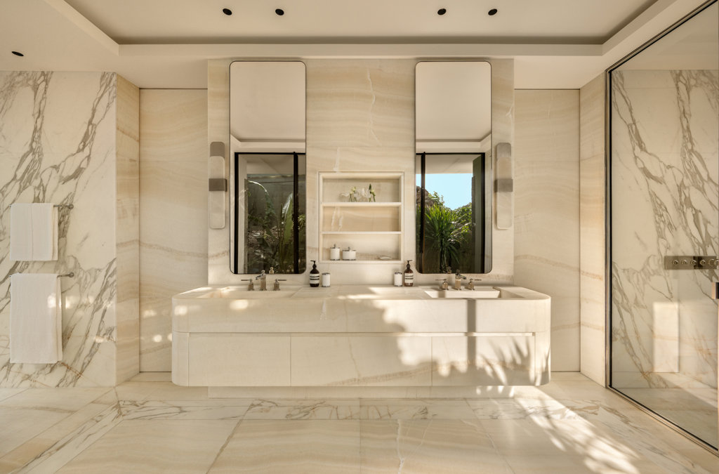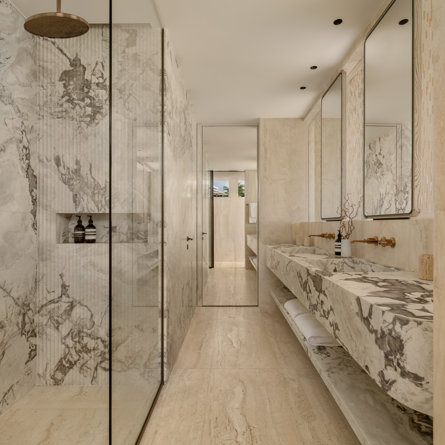 Ensuite bathroom, Walk-in shower, Bathtub, Outside shower, Hammam, Two sinks, Hair dryer, Close toilet.