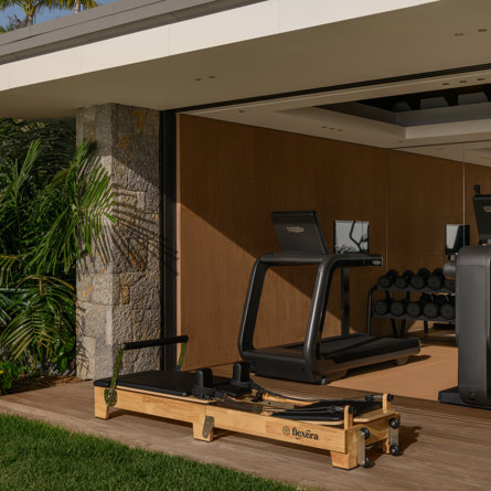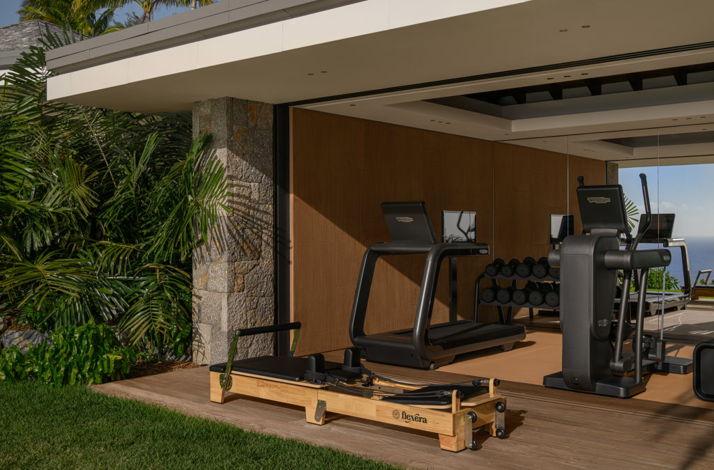 Air conditioning, Sink, TV, Fridge, Treadmill, Elliptical bike, Multi-Machine, Weights, Toilet.
