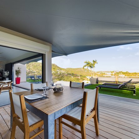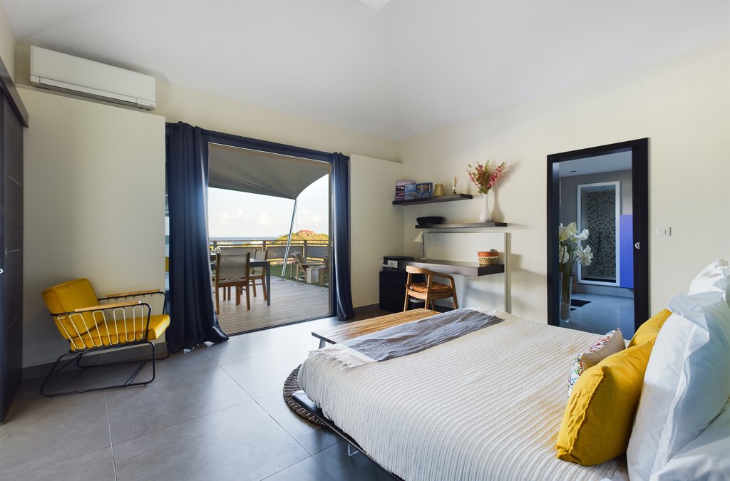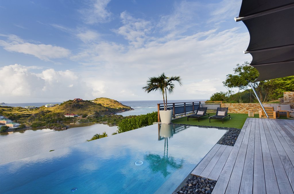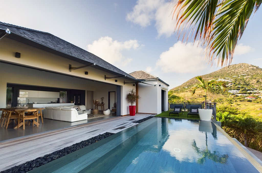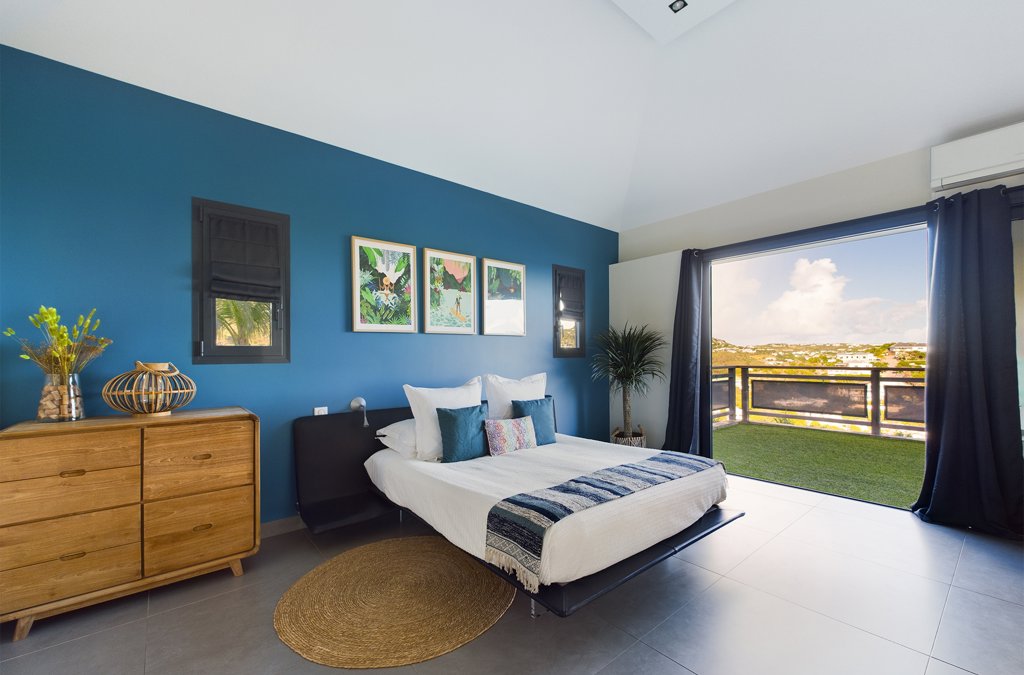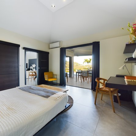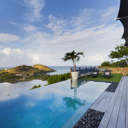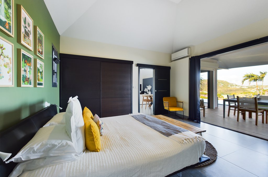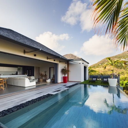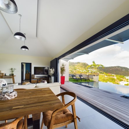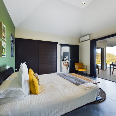 With its rare east-facing view overlooking Petit Cul de Sac, the petite Villa Open Space offers an efficient use of space thanks to its large living room opening onto the pool and terrace — a gently priced gem for a family or friends.