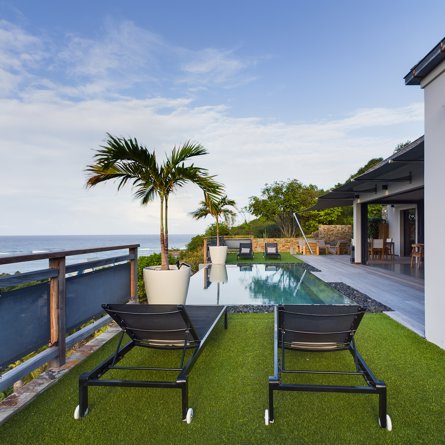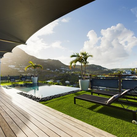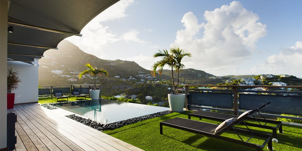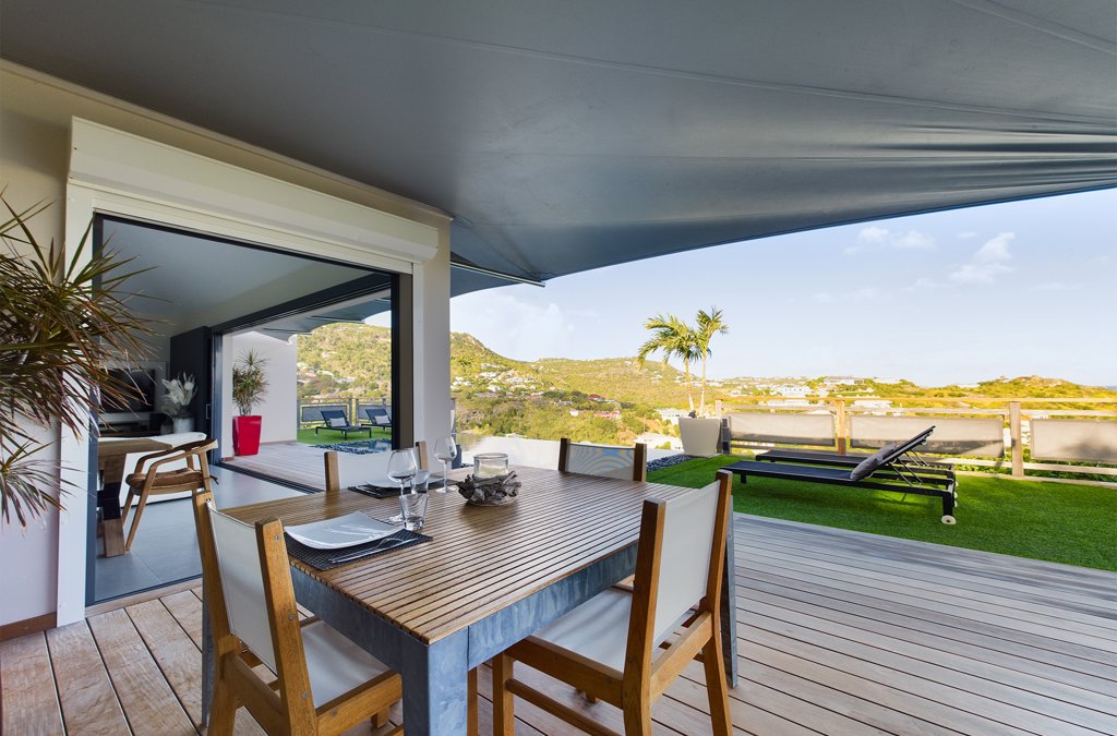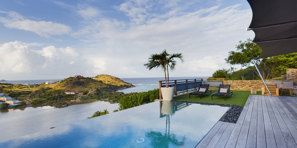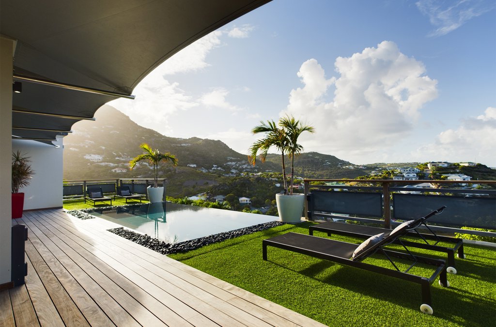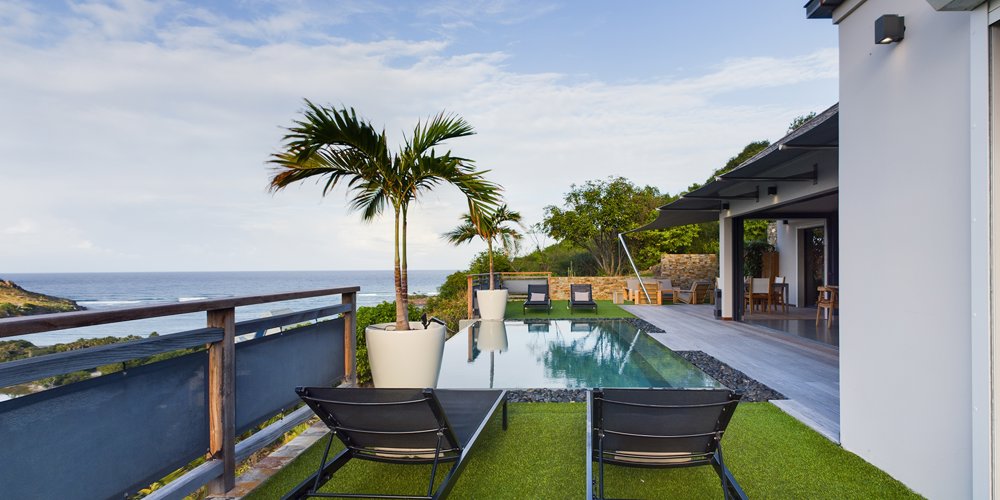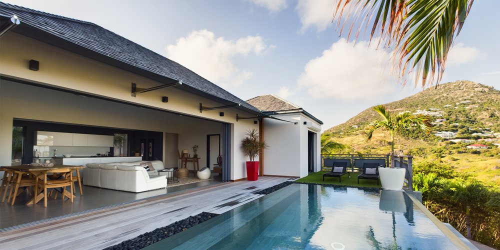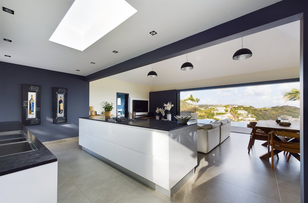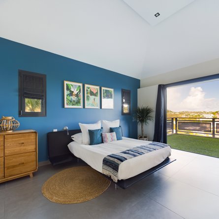 With its rare east-facing view overlooking Petit Cul de Sac, the petite Villa Open Space offers an efficient use of space thanks to its large living room opening onto the pool and terrace — a gently priced gem for a family or friends.