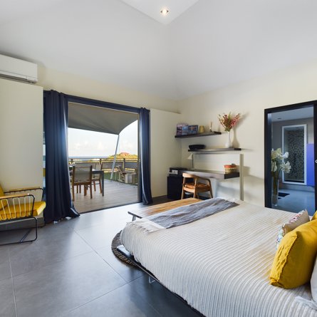 Sea view, Terrace, Air conditioning, Queen-size bed, Closet, Desk, Sound system, Black out curtains and Safe.