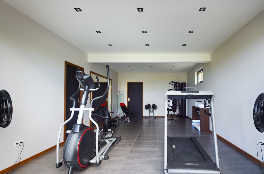 Fans, Treadmill, Elliptical bike, Rowing machine, Smith machine and Weights.