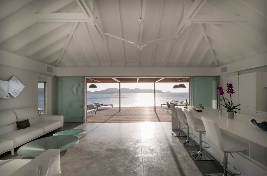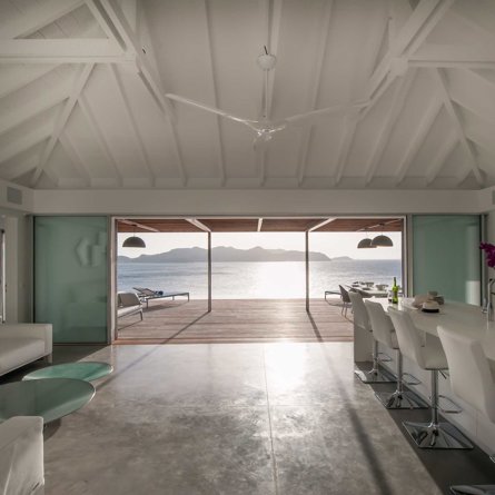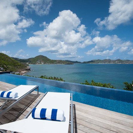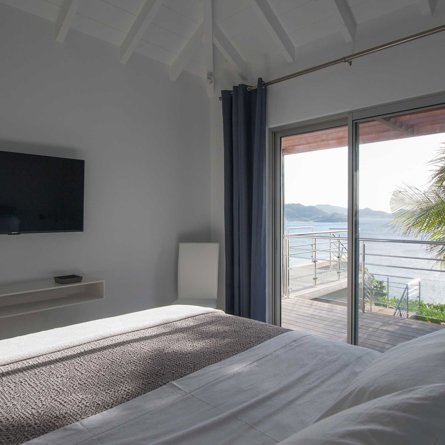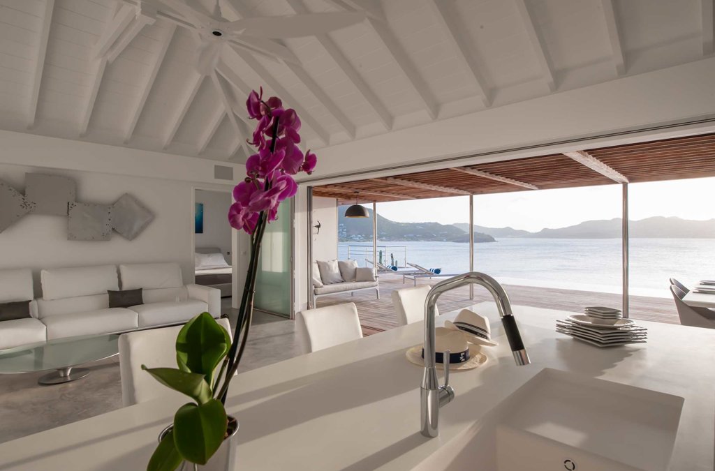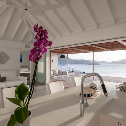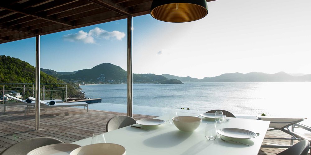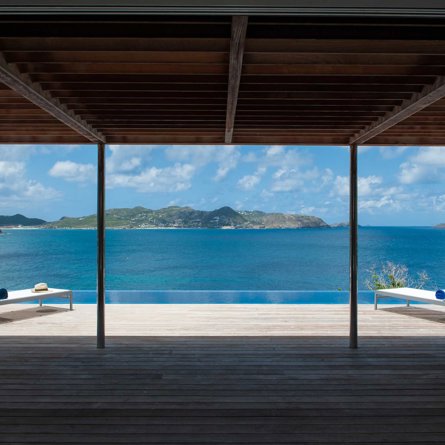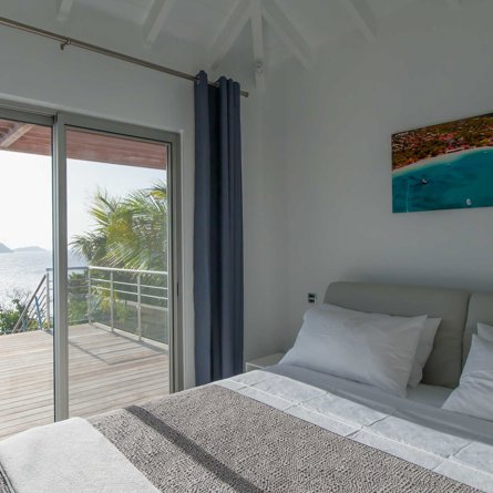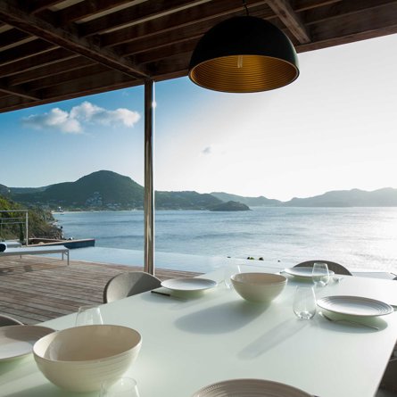 Located high on the cliffside and great for friends or family, Villa Pointe Milou is minimalist and straight-forward, with petite but relaxed bedrooms and a refined outdoor space overlooking a sweeping view of St Jean and Lorient.