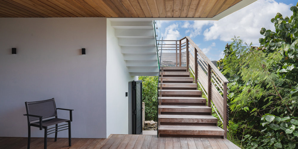 The petite Villa Rock is set high on a hill above Lorient, featuring a refined, Hamptons style décor with equal-sized bedrooms, lots of natural light and a very large pool deck overlooking the dazzling sea view.