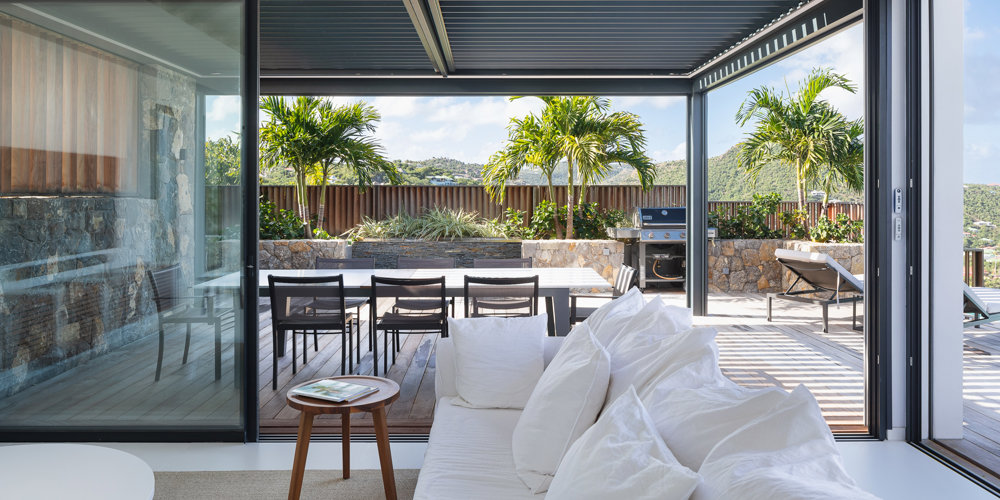 The petite Villa Rock is set high on a hill above Lorient, featuring a refined, Hamptons style décor with equal-sized bedrooms, lots of natural light and a very large pool deck overlooking the dazzling sea view.