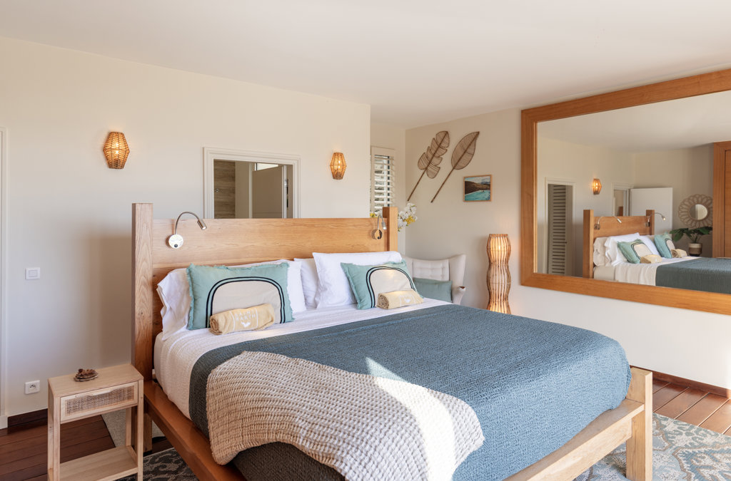 Sea view, Terrace, Air conditioning, Fan, Queen size bed, Closet, Smart TV, Apple TV, Netflix, Black out curtains, Safe.