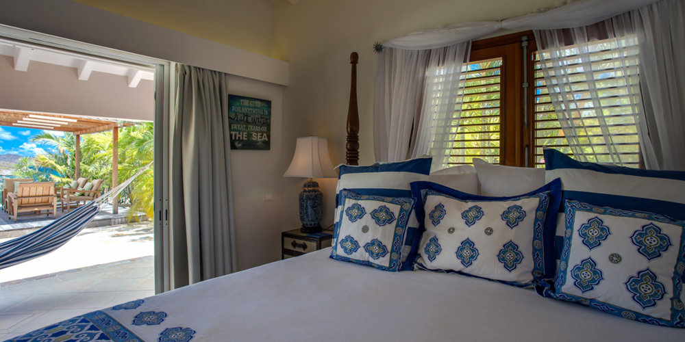 4 poster canopy King-size bed, A/C, ceiling fan, en-suite bathroom, hair dryer