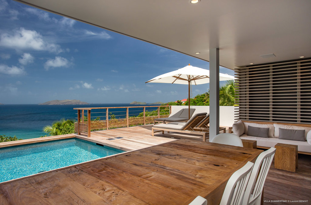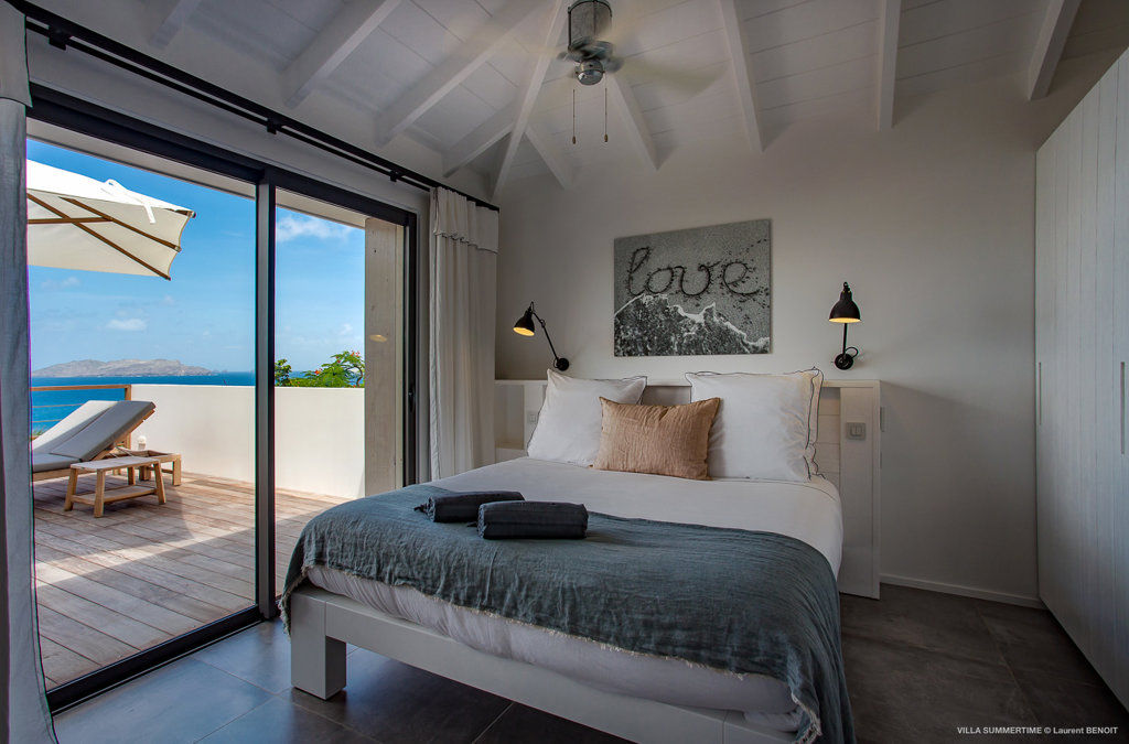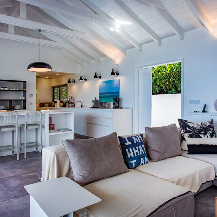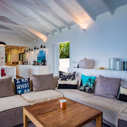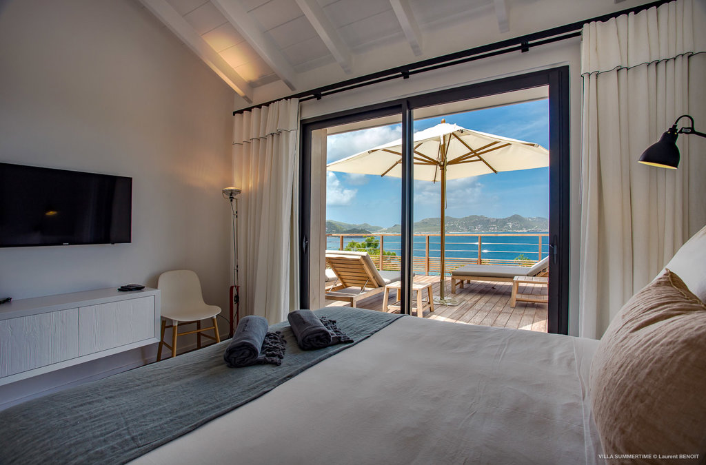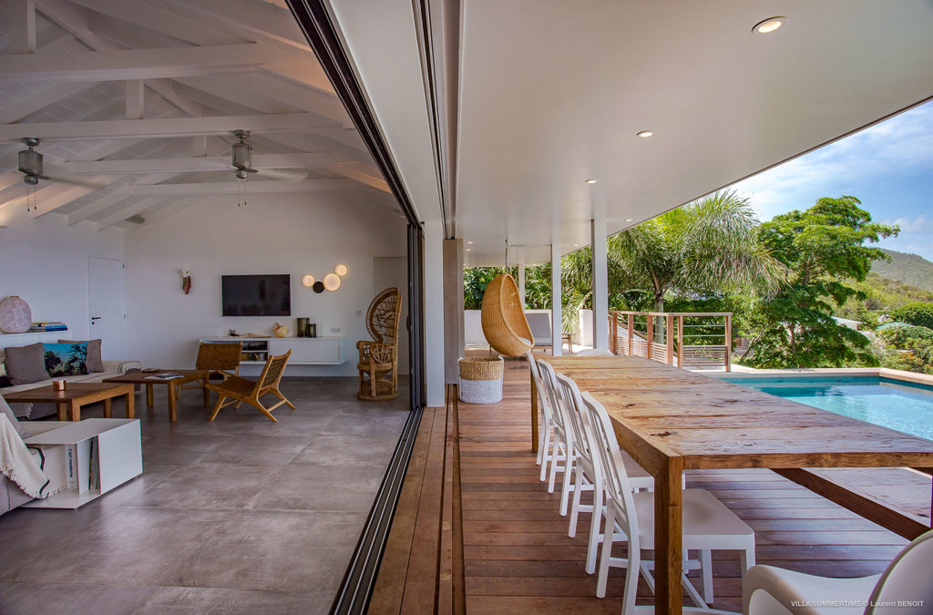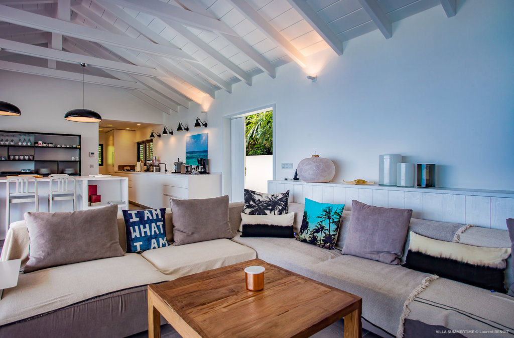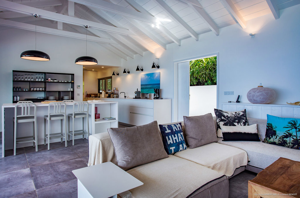 The living is easy in Villa Summertime, where a modern, cosy and fully air-conditioned interior with one primary bedroom and three additional bedrooms opens out onto a north-west facing pool deck overlooking beautiful Lorient and St Jean.