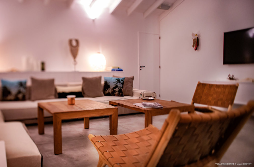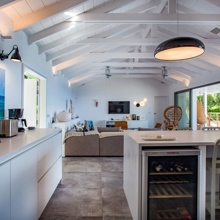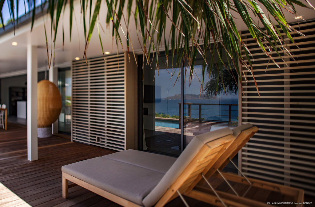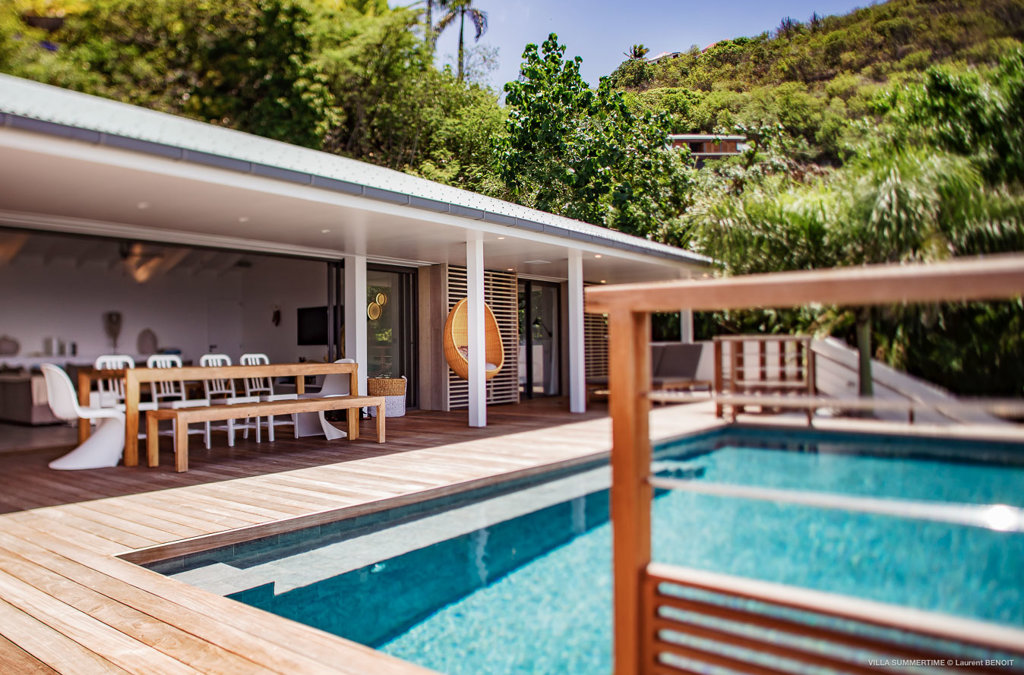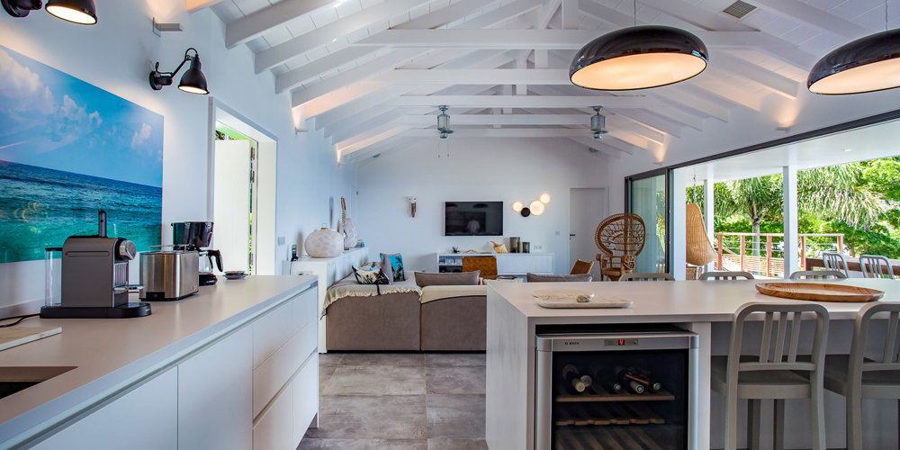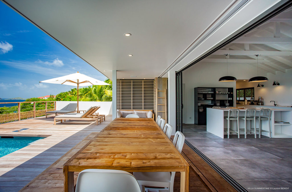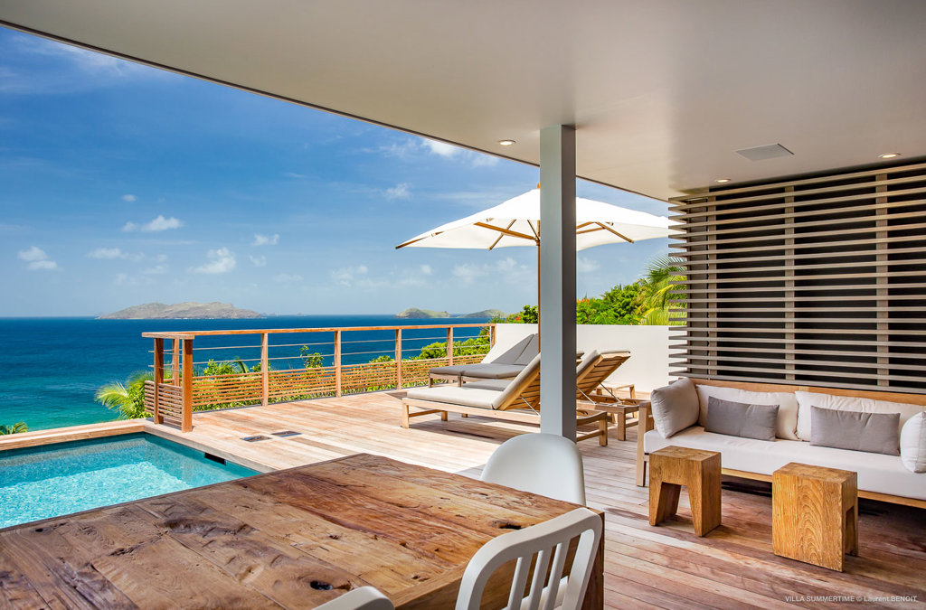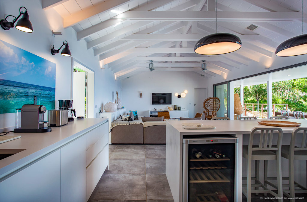 The living is easy in Villa Summertime, where a modern, cosy and fully air-conditioned interior with one primary bedroom and three additional bedrooms opens out onto a north-west facing pool deck overlooking beautiful Lorient and St Jean.