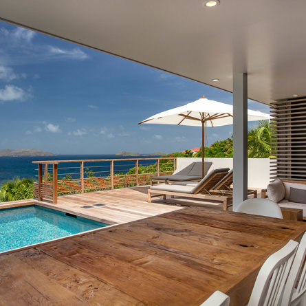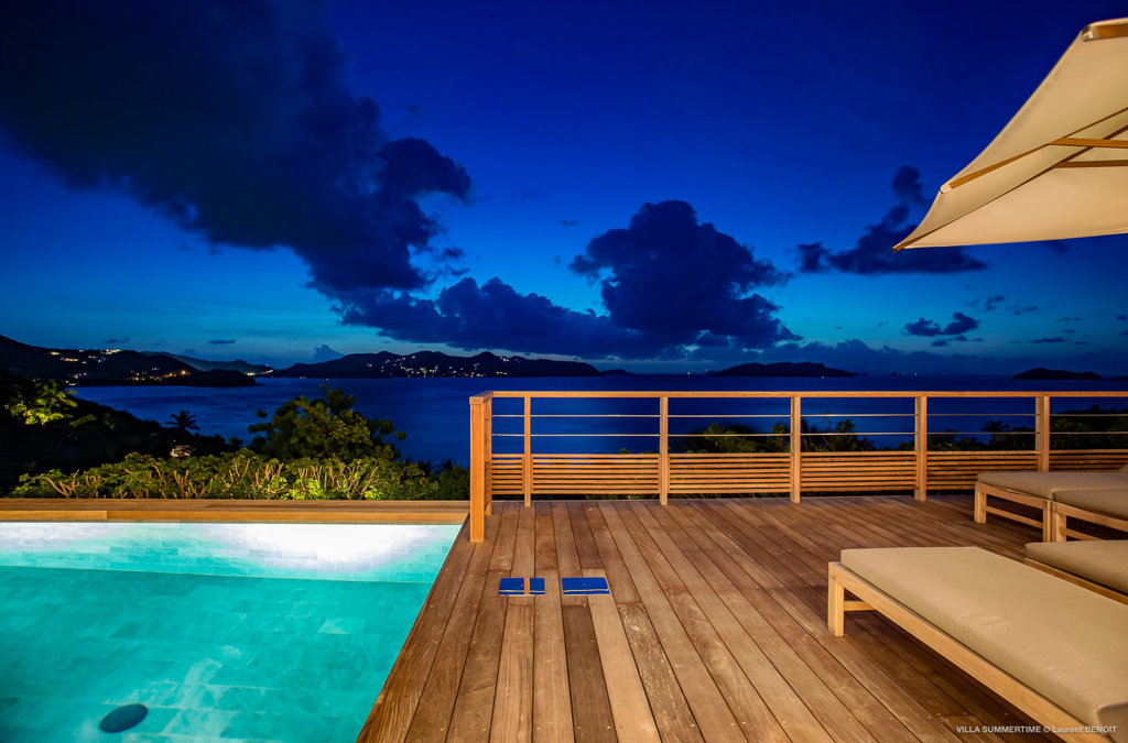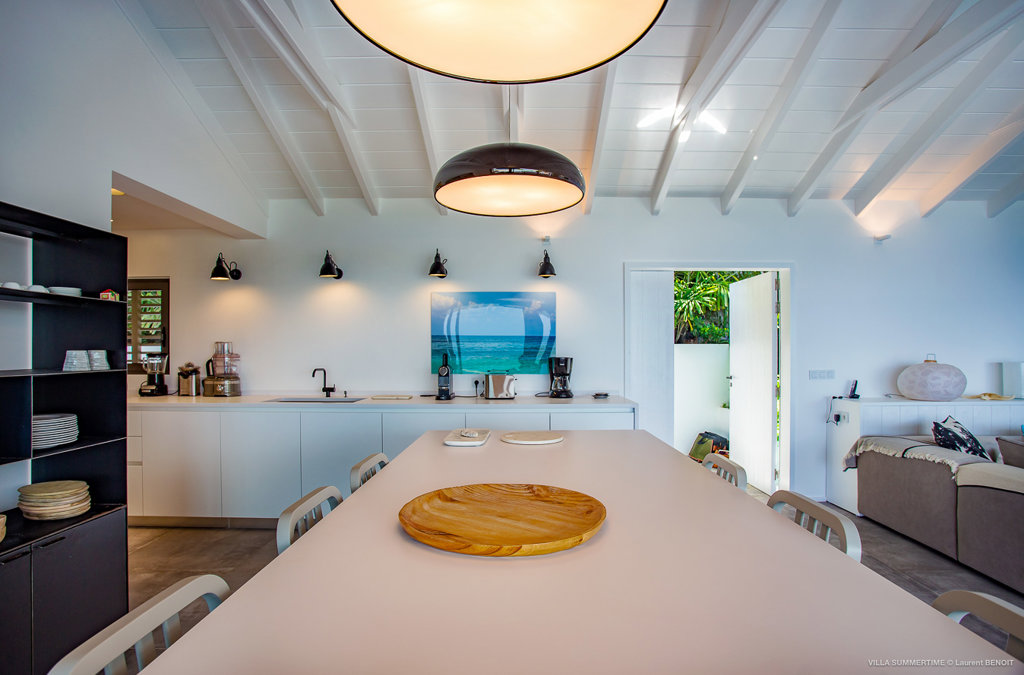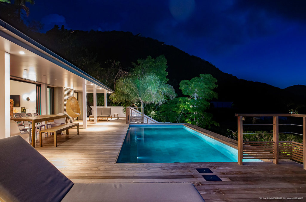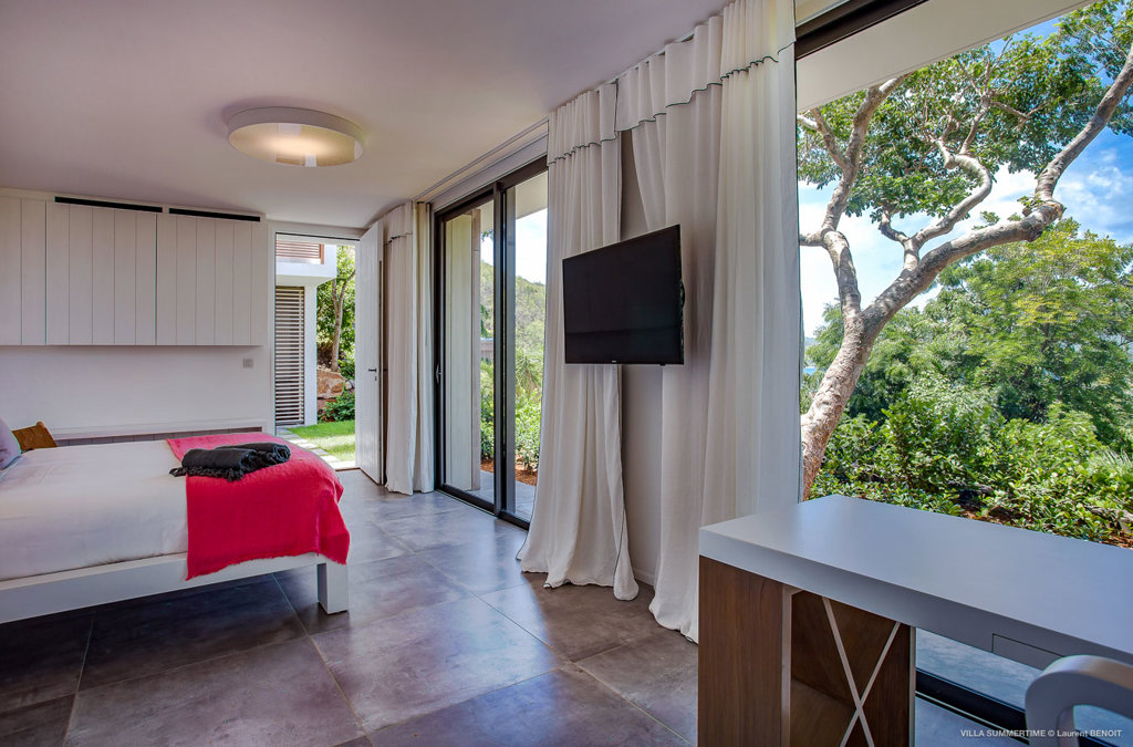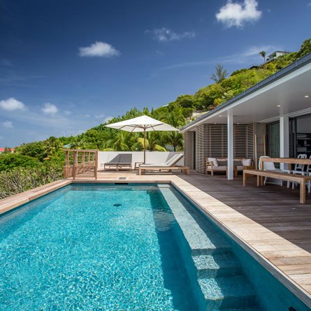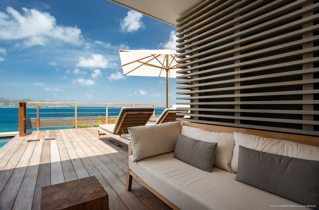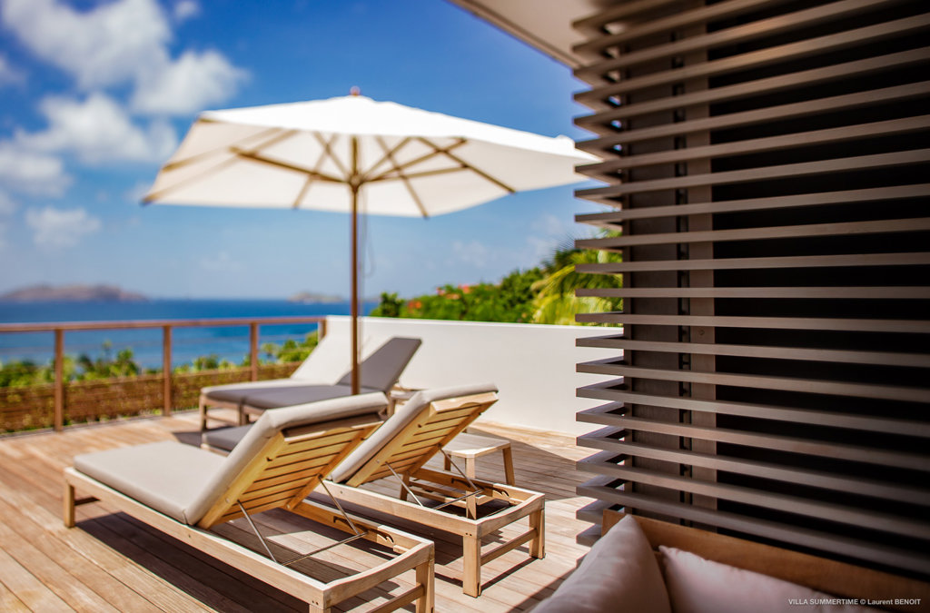 The living is easy in Villa Summertime, where a modern, cosy and fully air-conditioned interior with one primary bedroom and three additional bedrooms opens out onto a north-west facing pool deck overlooking beautiful Lorient and St Jean.