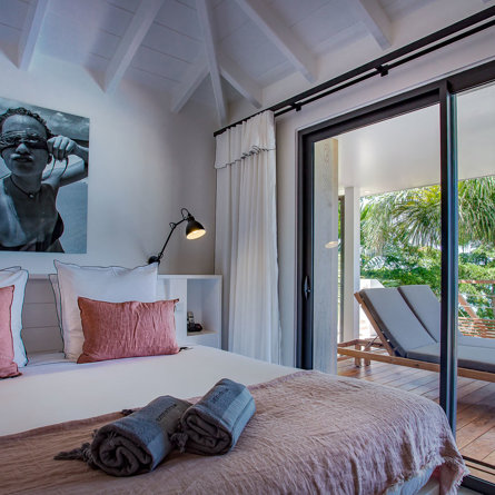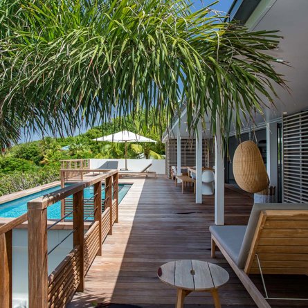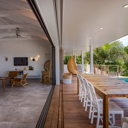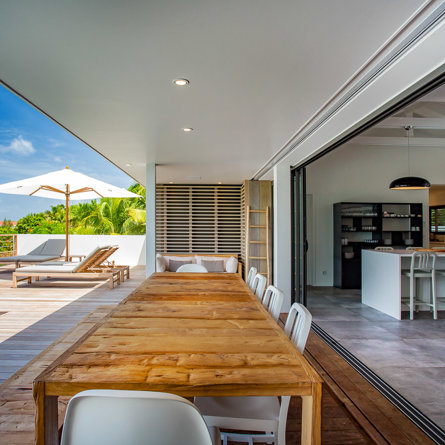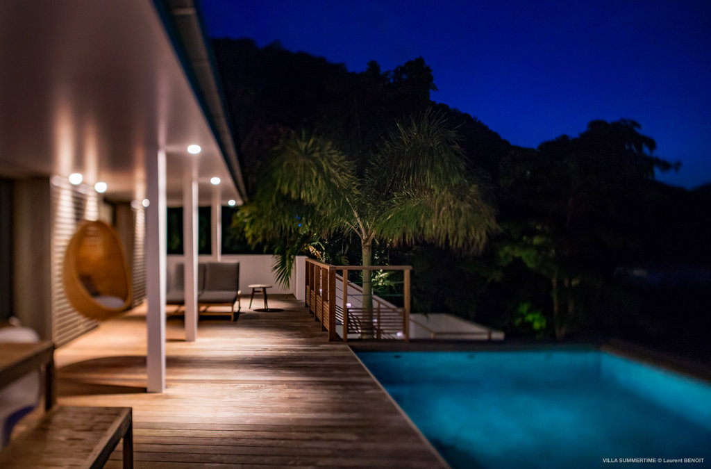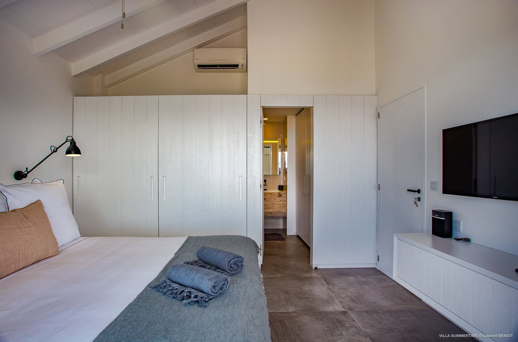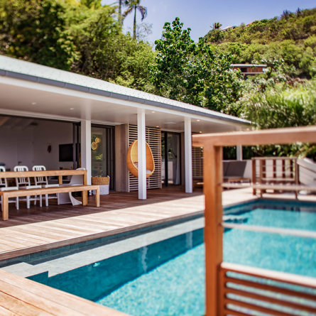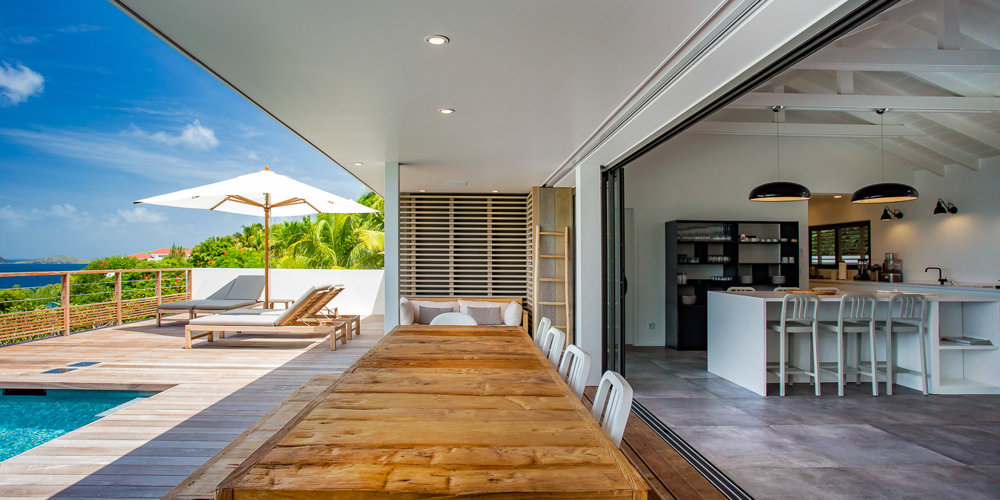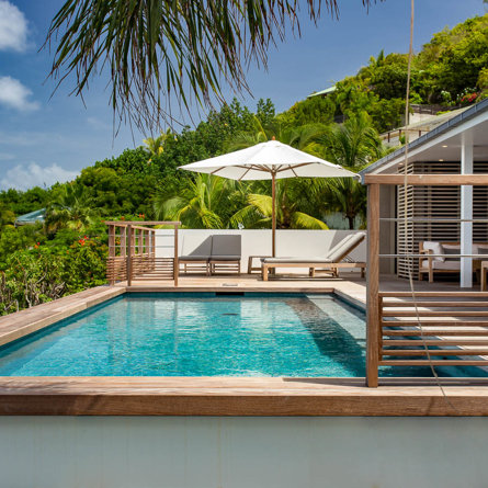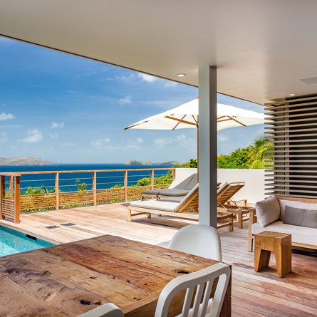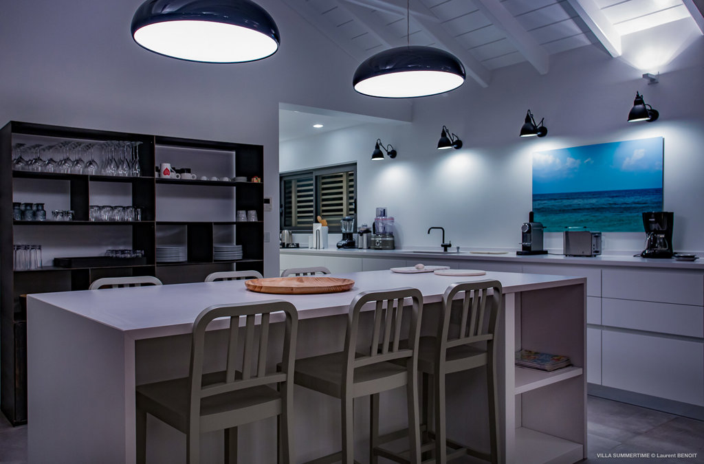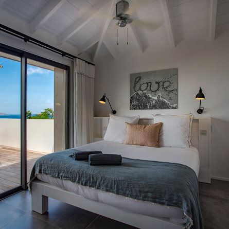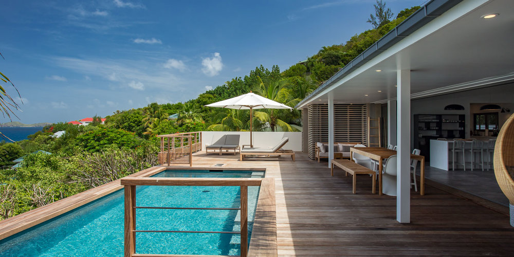 The living is easy in Villa Summertime, where a modern, cosy and fully air-conditioned interior with one primary bedroom and three additional bedrooms opens out onto a north-west facing pool deck overlooking beautiful Lorient and St Jean.
