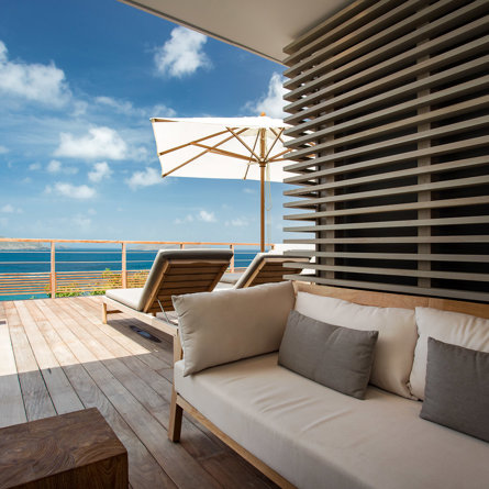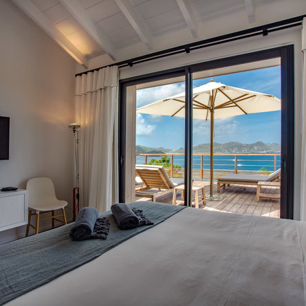 Sea view, Terrace, Air conditioning, Fan, Queen size bed, Closet, Smart TV, Sound system, Black out curtains, Safe.
