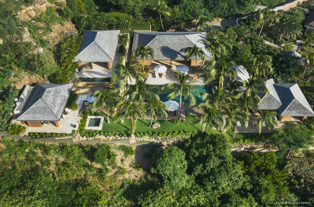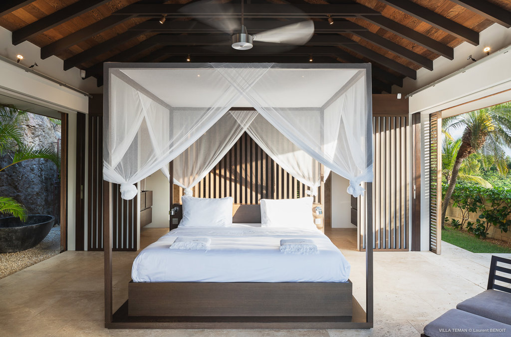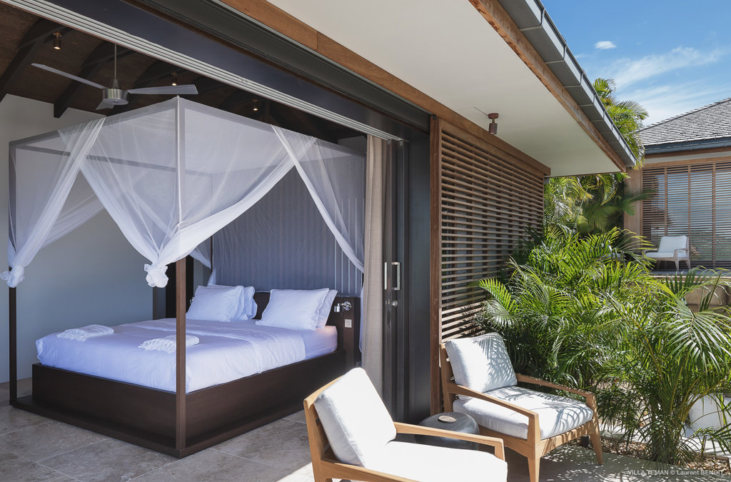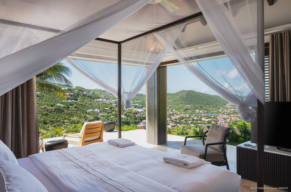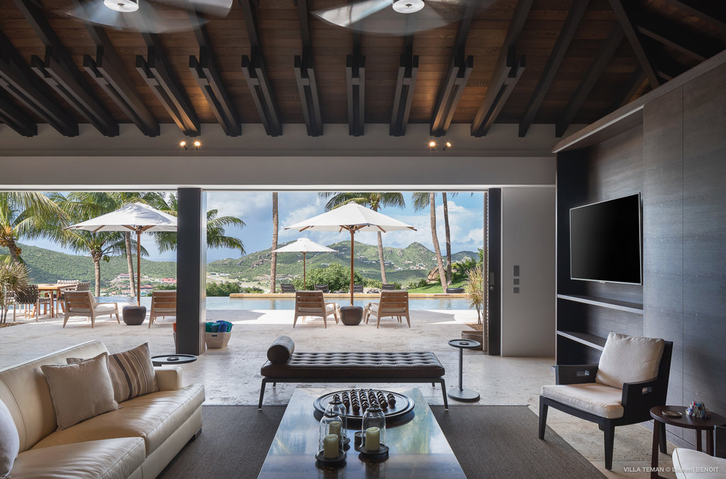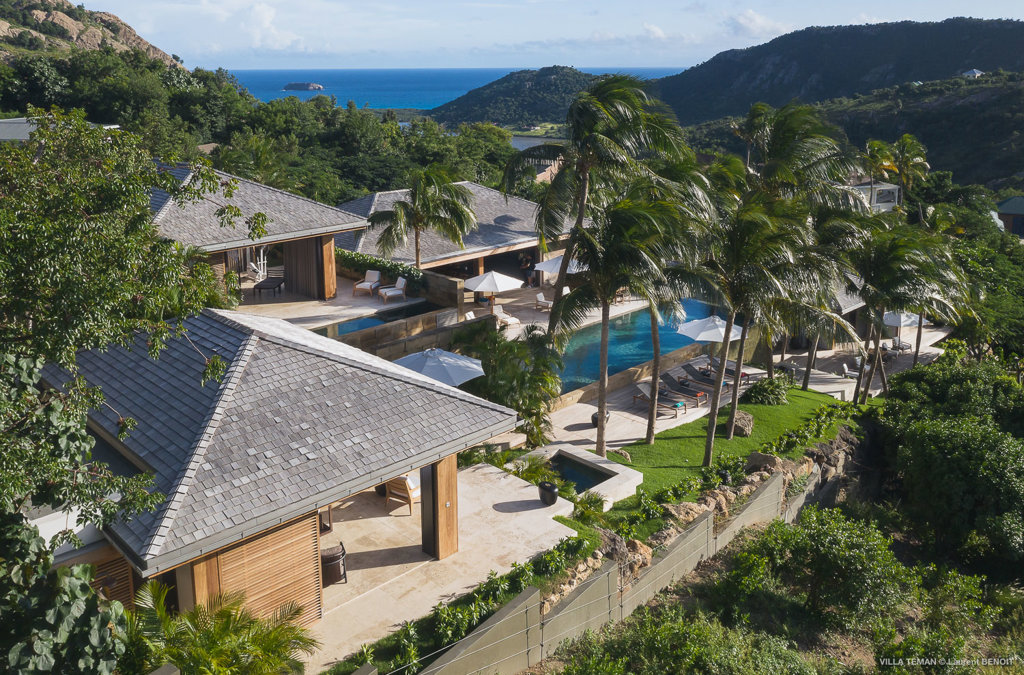 Gorgeous materials like travertine, Balinese stone and wood characterize the completely open yet very private Villa Teman, featuring five bedrooms over three levels, each with its own terrace, including two primary bedrooms — one with a private pool and the other with its own jacuzzi —situated in St Jean close to Eden Rock – St Barths with a view over the bay… the large spaces and tranquil garden create a soothing atmosphere for family and friends.