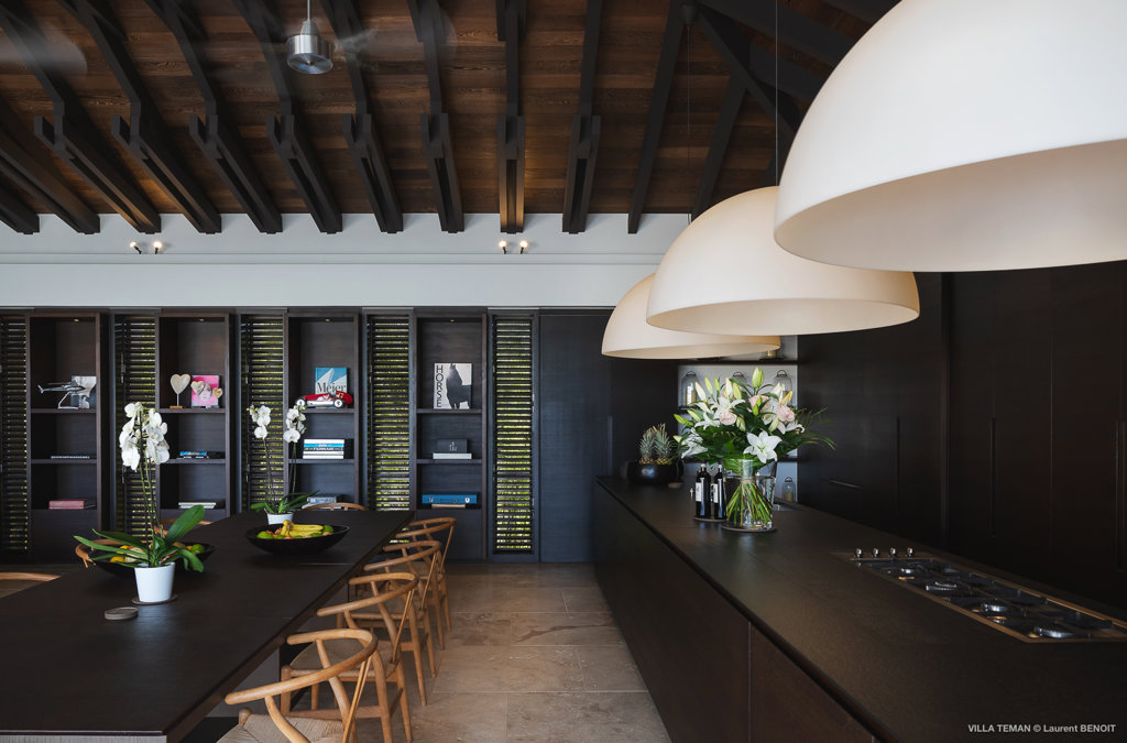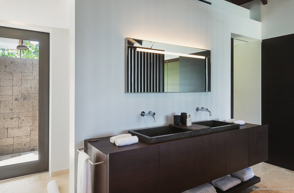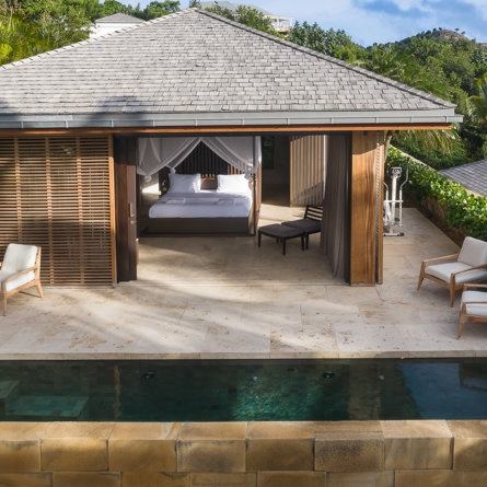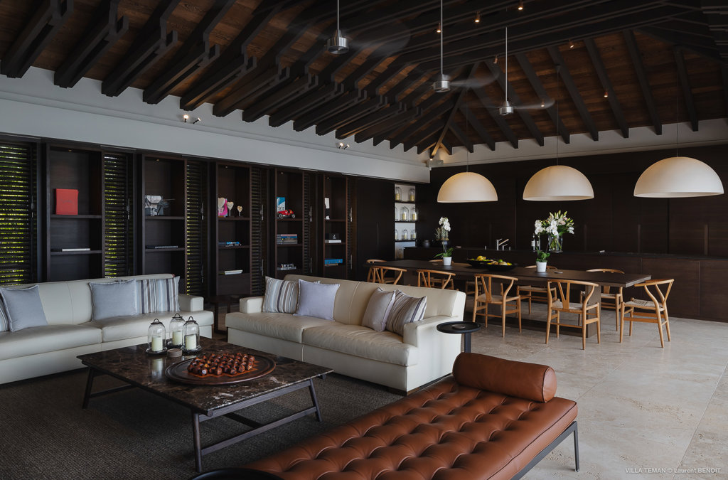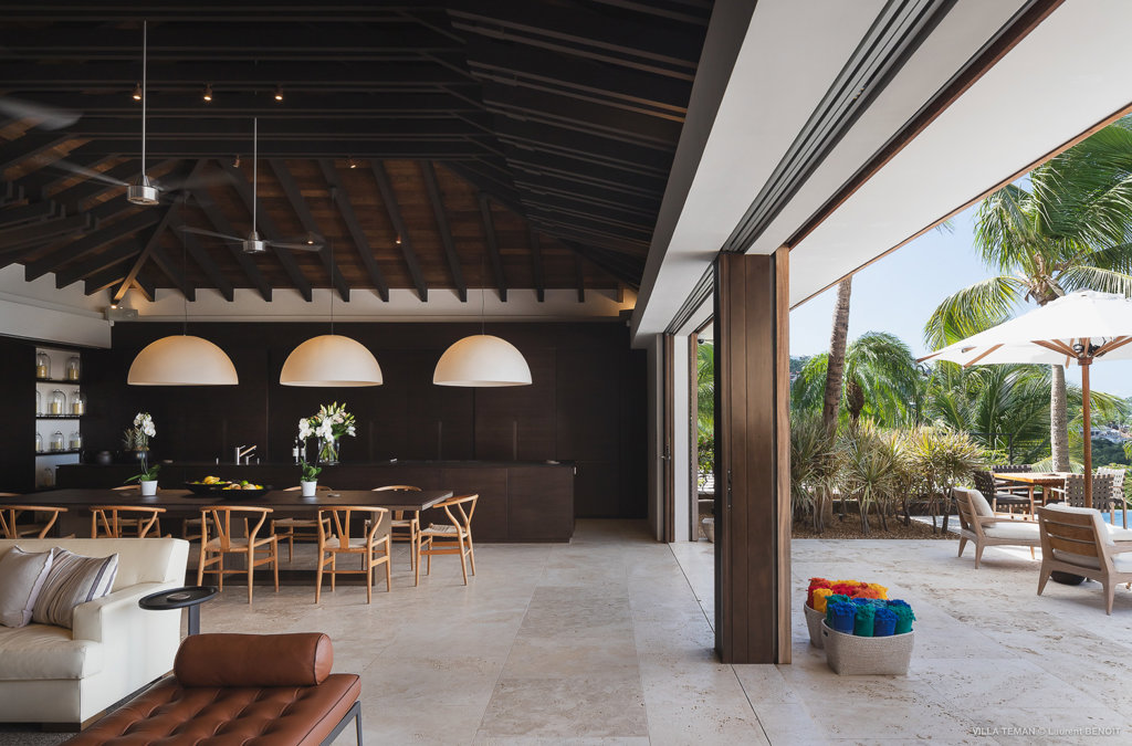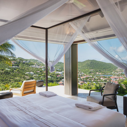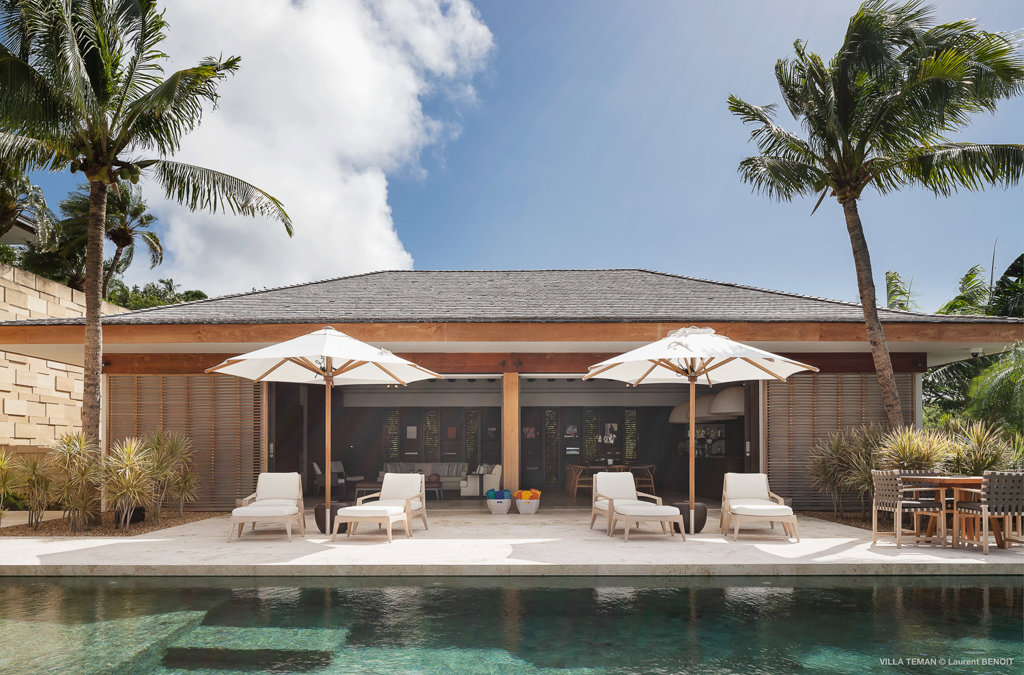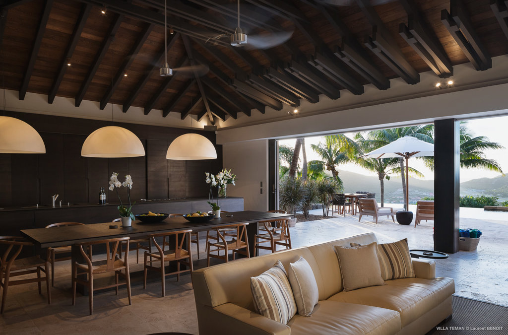Gorgeous materials like travertine, Balinese stone and wood characterize the completely open yet very private Villa Teman, featuring five bedrooms over three levels, each with its own terrace, including two primary bedrooms — one with a private pool and the other with its own jacuzzi —situated in St Jean close to Eden Rock – St Barths with a view over the bay… the large spaces and tranquil garden create a soothing atmosphere for family and friends.