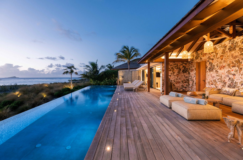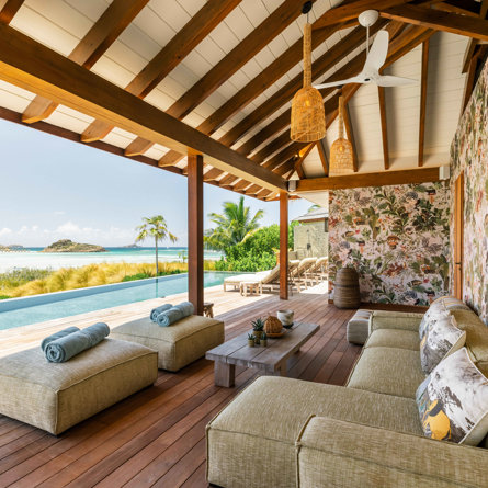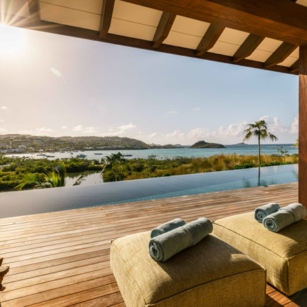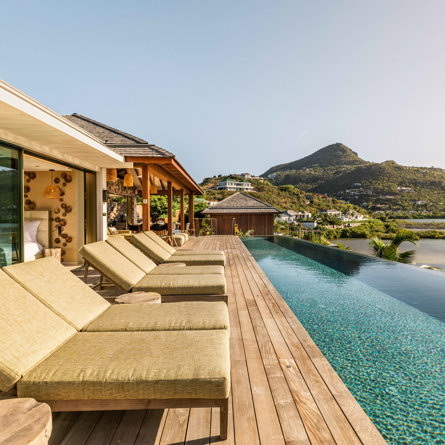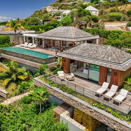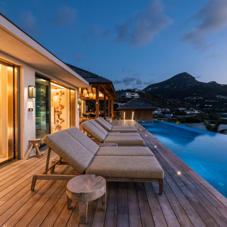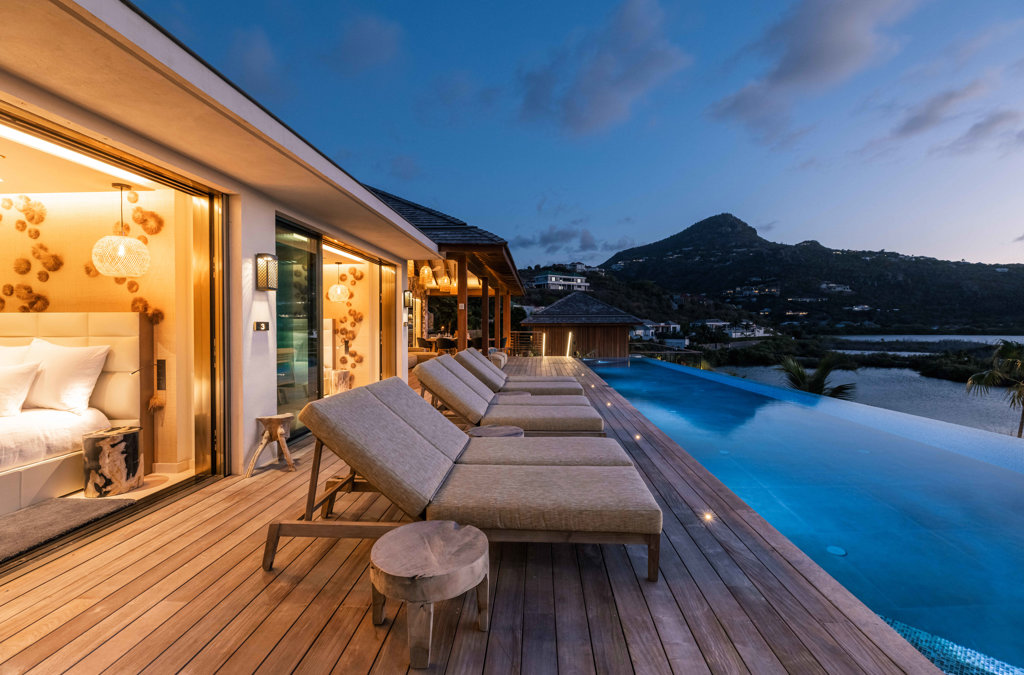 Situated just steps from the beach, Villa Tourmaline is a sophisticated three-bedroom retreat that exudes luxury and comfort. The villa features a sumptuous primary suite, a 16-meter heated swimming pool, and a wine cellar. The expansive terrace, with its sweeping sea views, provides a stunning panorama of the bay, illuminated by the sparkling of countless lights at dusk.