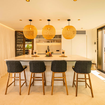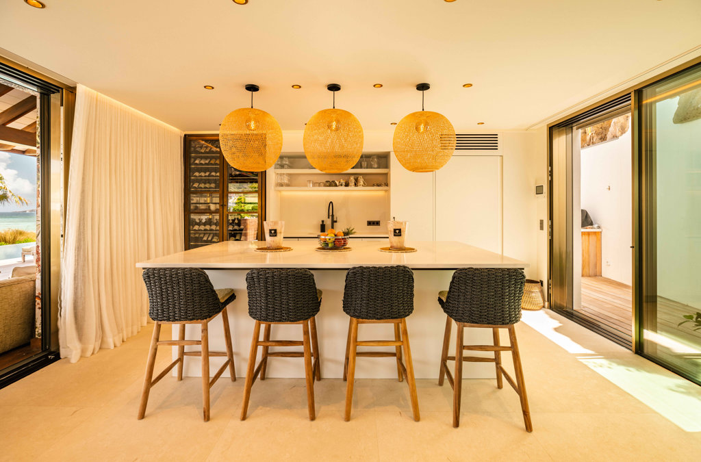 Air conditioning, Coffee machine, Nespresso machine, Milk foamer, Kettle, Fridge, Wine cellar, Ice machine, Gas stove, Oven, Microwave, Blender, Toaster, Dishwasher and Bar.