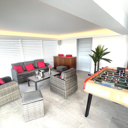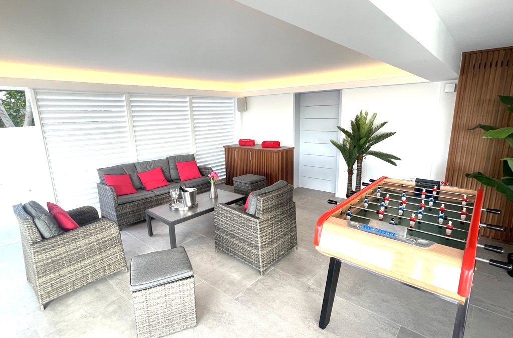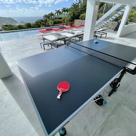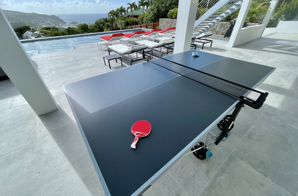 Sea view, Terrace, Dining table, Heated pool, Jacuzzi, Sun beds, Sofa, Ping pong table, Babyfoot, Barbecue.