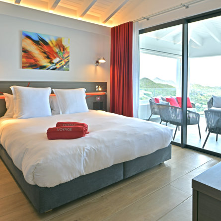 Sea view, Terrace, Air conditioning, Queen size bed or twin beds, Closet, Desk, Smart TV, Black out curtains, Safe.