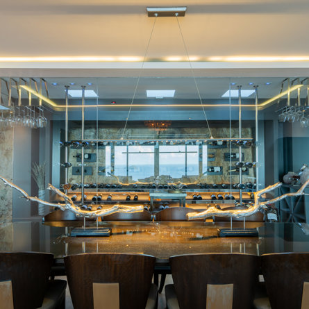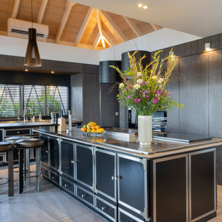 Air conditioning, Coffee machine, Nespresso machine, Milk foamer, Kettle, Fridge, Wine cellar, Ice machine, Electric cooker, Oven, Microwave, Blender, Citrus press, Juice extractor, Toaster, Dishwasher.