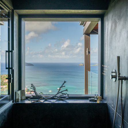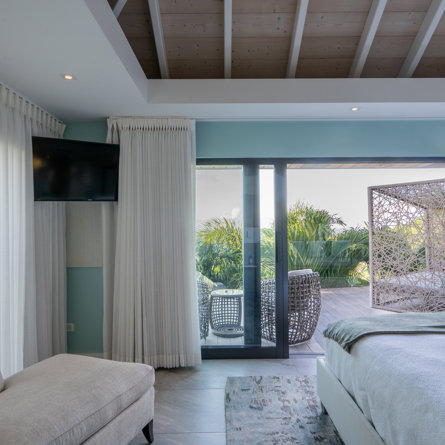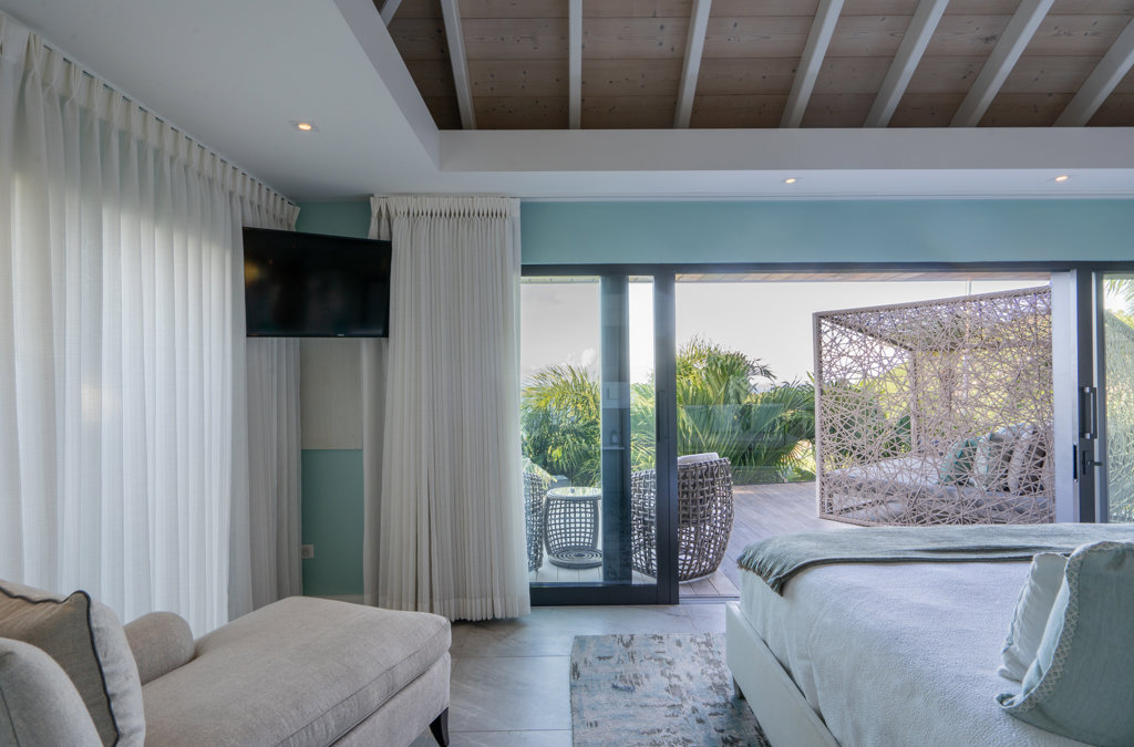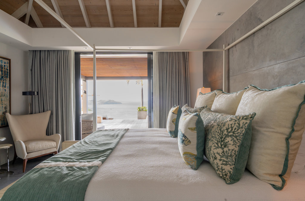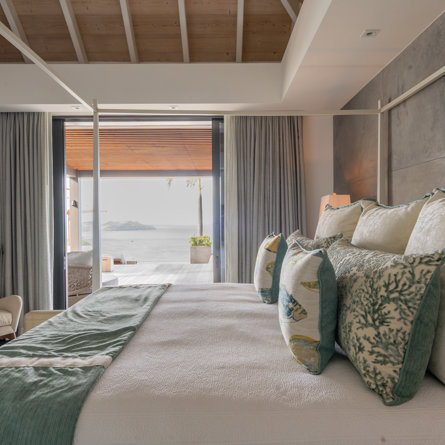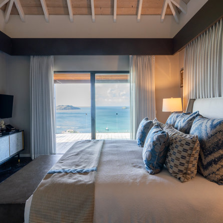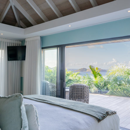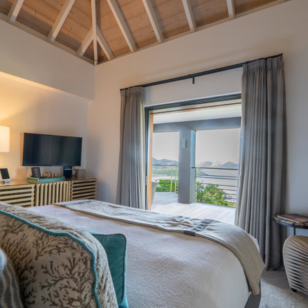 Sea view, Terrace, Air conditioning, Fan, King size bed, Walk-in closet, Desk, Dish, Apple TV, Curtains, Safe.