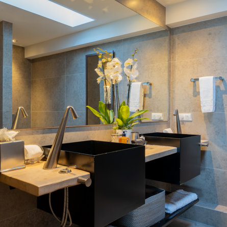 Ensuite bathroom, Walk-in shower, Two sinks, Separate toilet.