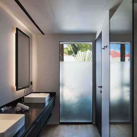 Ensuite open bathroom, Walk-in shower, Two sinks, Hair dryer, Separate toilet.