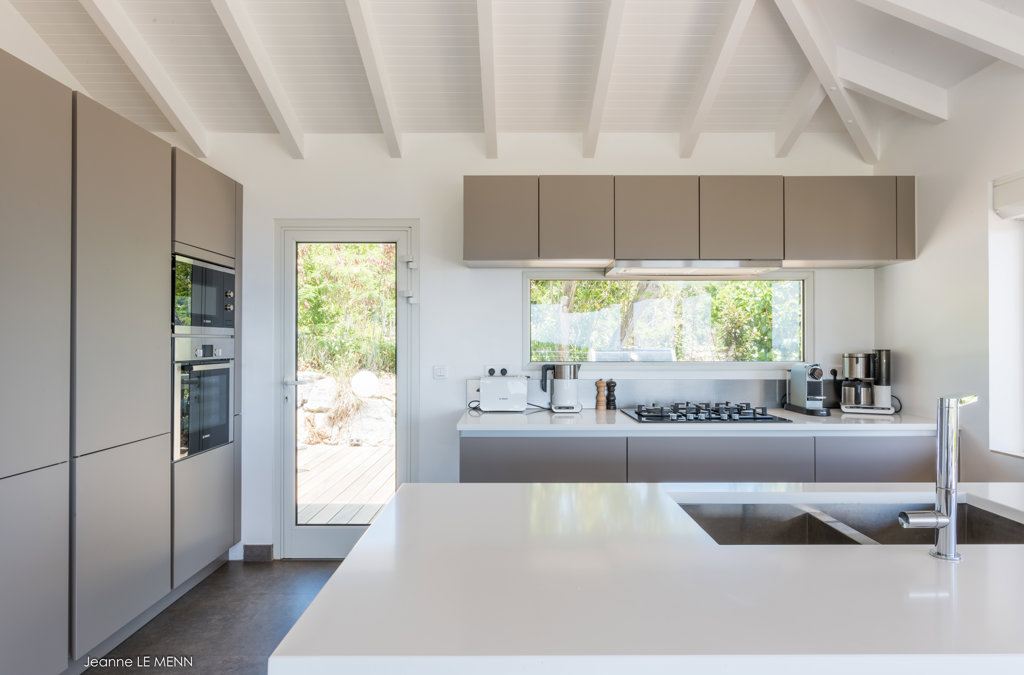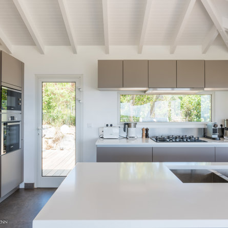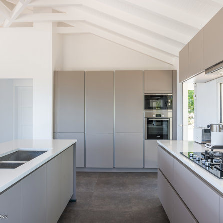 Coffee machine, Nespresso machine, Kettle, Fridge, Electric cooker, Oven, Microwave, Blender, Citrus press, Toaster, Dishwasher, Dining table.