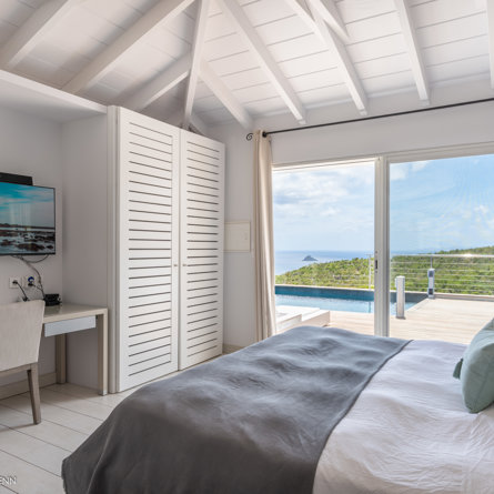 Sea & mountain view, Terrace, Air conditioning, King size bed, Closet, Desk, TV, Apple TV, Satellite, Black out curtain, Mosquito screen, Safe.
