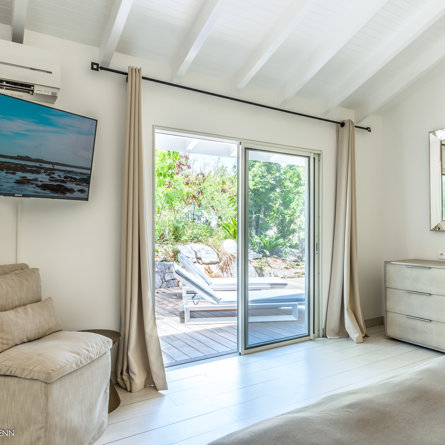 Garden view, Private terrace, Air conditioning, King size bed, Closet, TV, Apple TV, Satellite, Black out curtain, Mosquito screen, Safe.