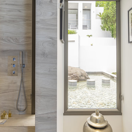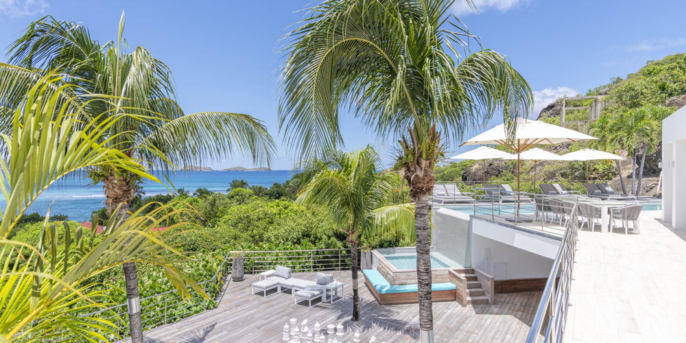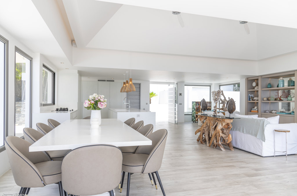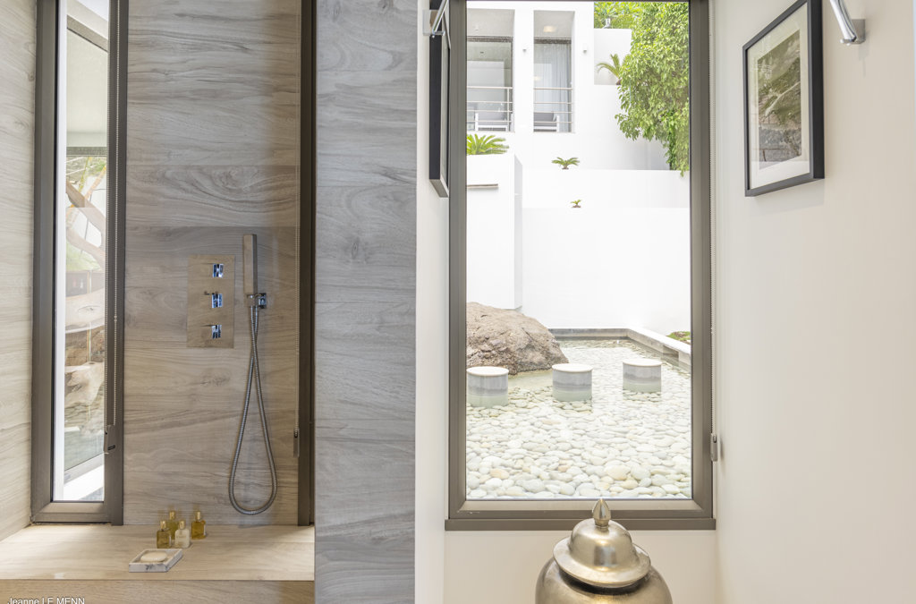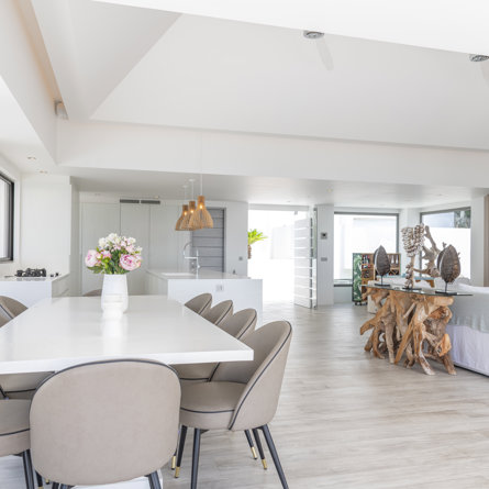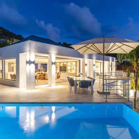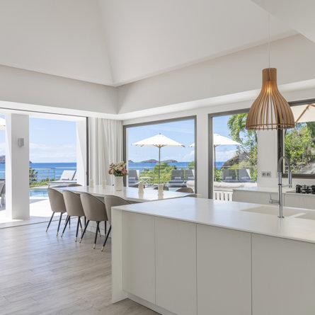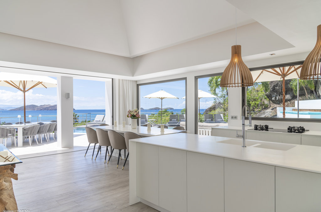 Nestled in a peaceful setting at the end of a private pathway, Villa Avenstar is an ultra-modern house that is perfect for a family getaway, perched high above stunning Lorient Beach with step-only access and outstanding bay views.