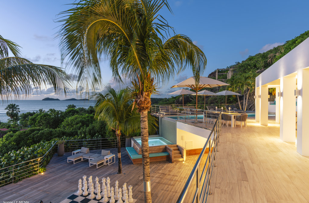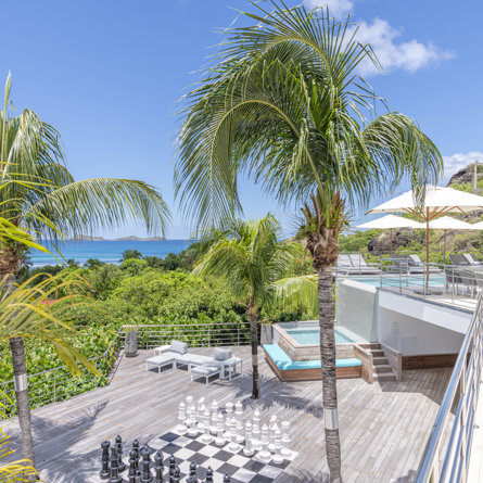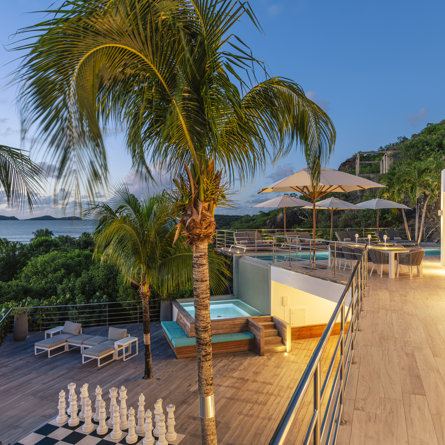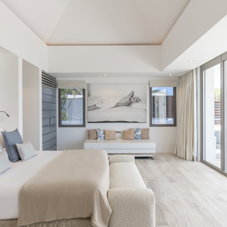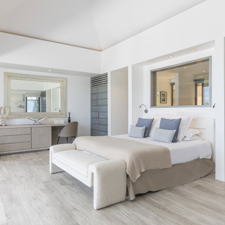 Sea & pool view, Private terrace, Air conditioning, Fan, Queen size bed, Closet, Desk, Smart TV, Apple TV, Satellite, Netflix, Black out curtains, Safe.