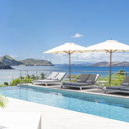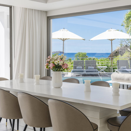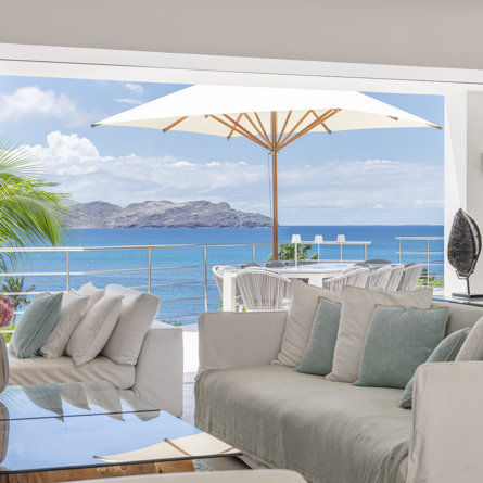 Sea view, Garden, Terrace, Dining table, Heated pool, Sun beds, Sun umbrellas, Sofa, Sound system, Barbecue.