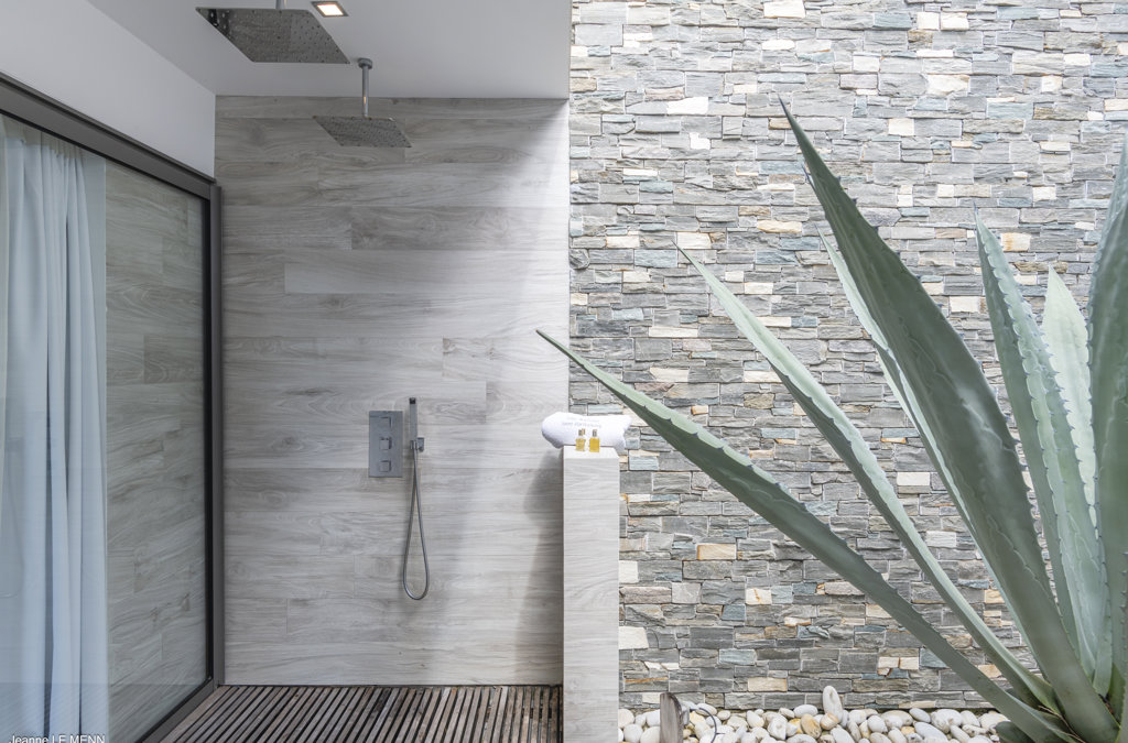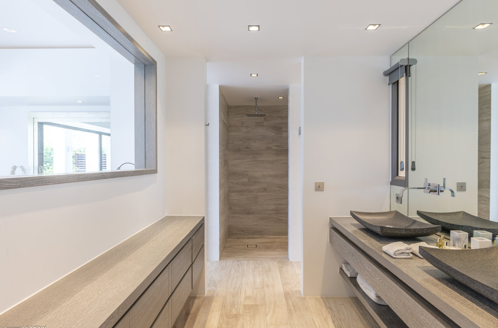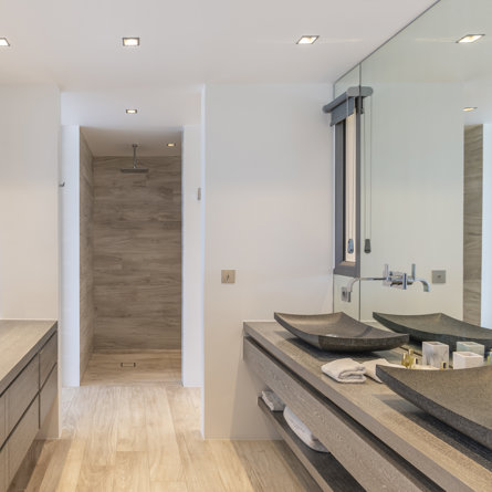 Ensuite bathroom, Walk-in shower, Outside shower, Two sinks, Hair dryer, Separate toilet.